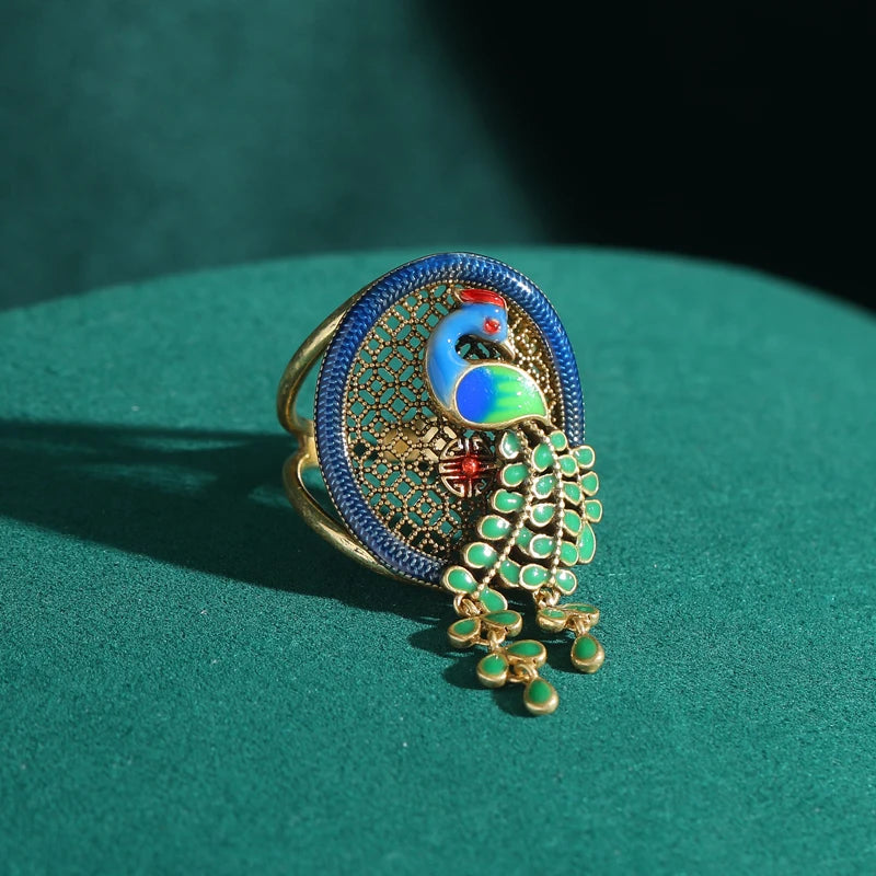 - تصميم طاووس مفرغ مع تفاصيل ريش مرسومة بدقة