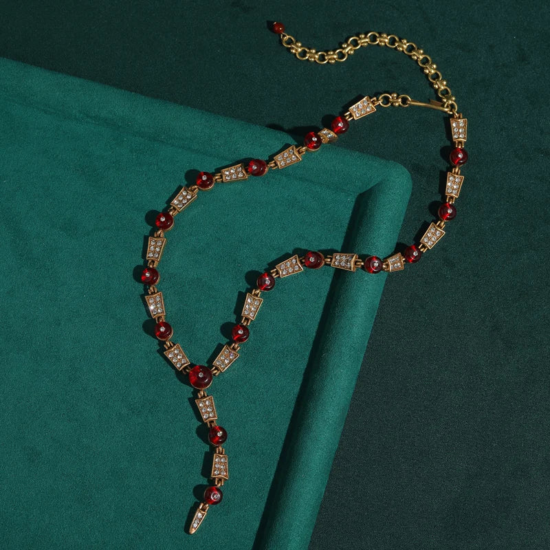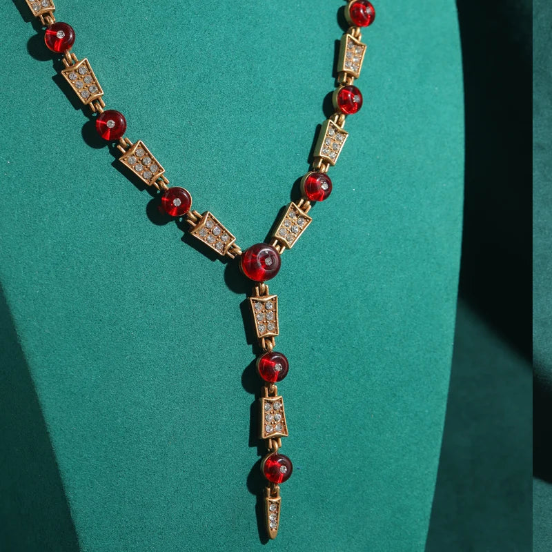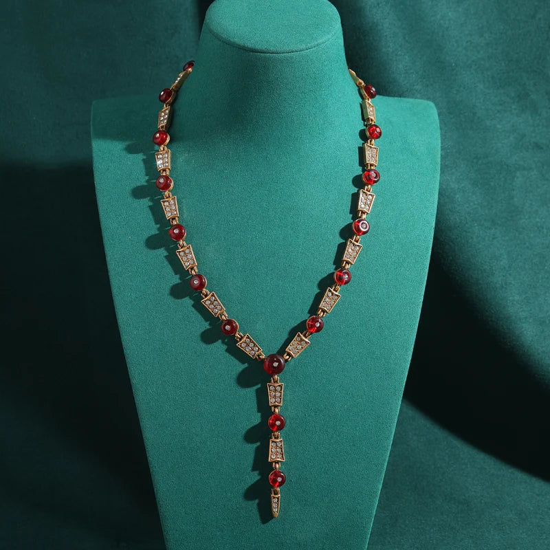 Rubivine | مجوهرات ذهب 24K | تصميم Y بكريستال ياقوتي