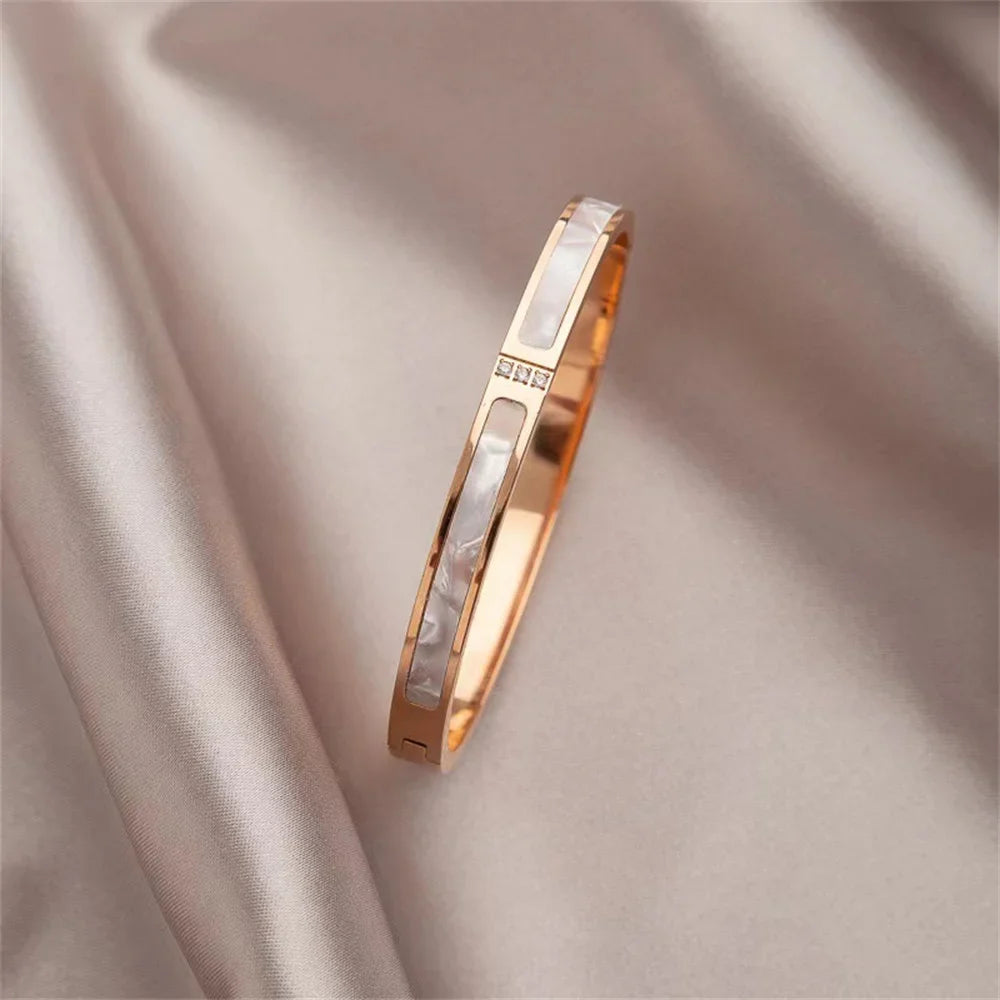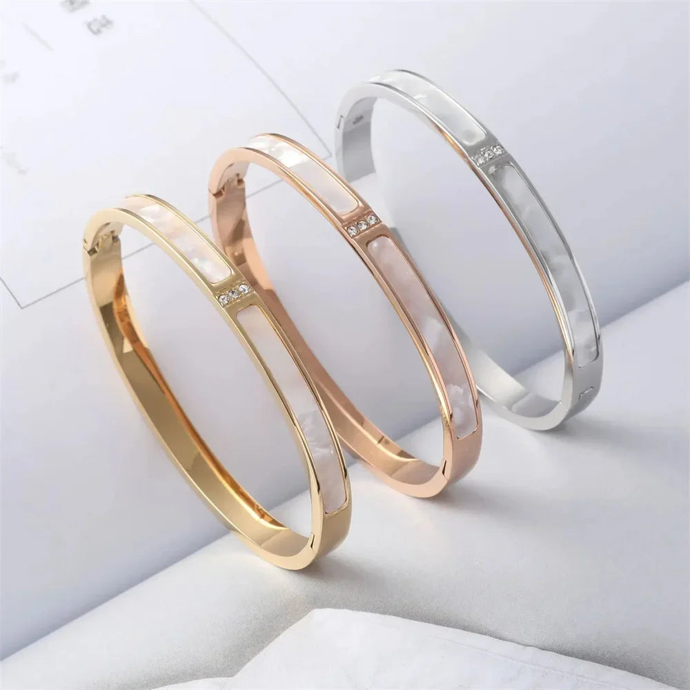 سوار Blancira | فولاذ تيتانيوم | مرصعة بصدفة بيضاء