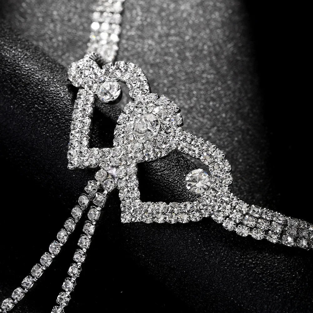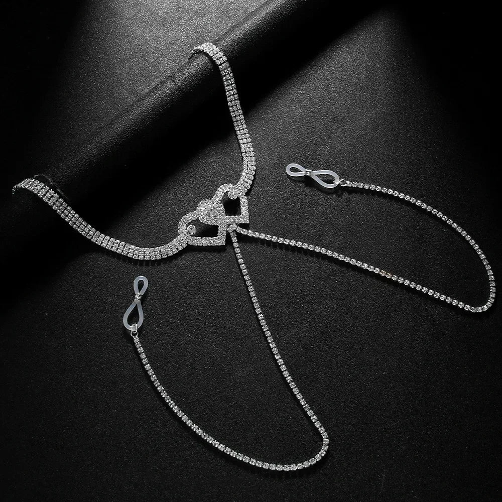 إكسسوار فاخر بتصميم قلبين مرصعين بالكريستال المصقول بدقة، تنساب منه سلاسل مزدوجة تزين الصدر بلمعة آسرة. قطعة خفيفة ومريحة، مثالية للسهرات، الإطلالات الجريئة، أو لمسة أنثوية مع أزياء البحر.