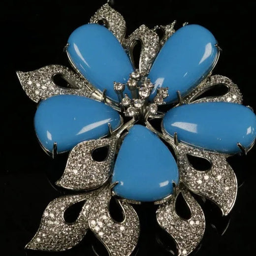 التصميم: دبوس زهور على طراز القصر مع تفاصيل مرصعة بالزركون
