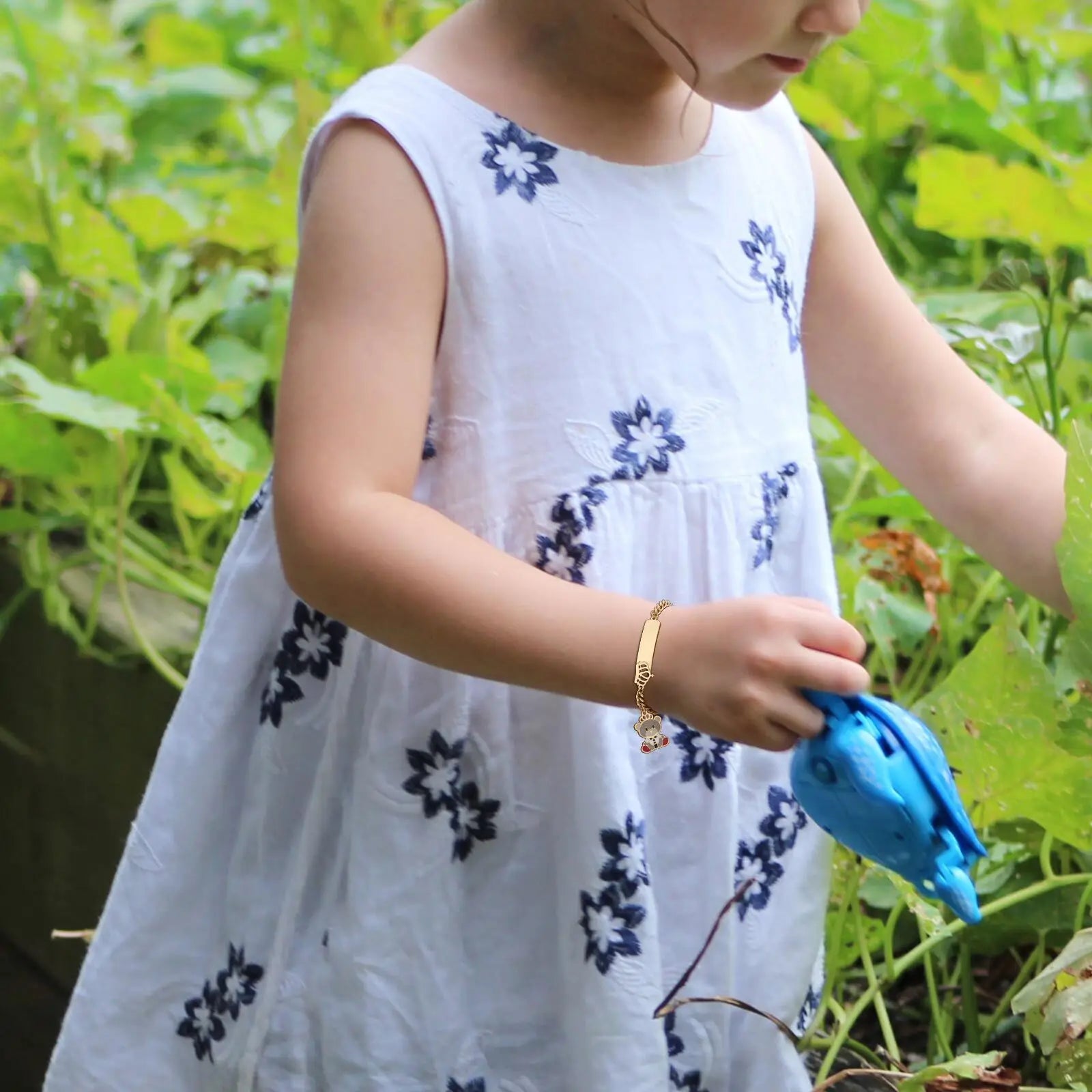 سوار أطفال ذهبي | تعليقة دب متوج مع نقش