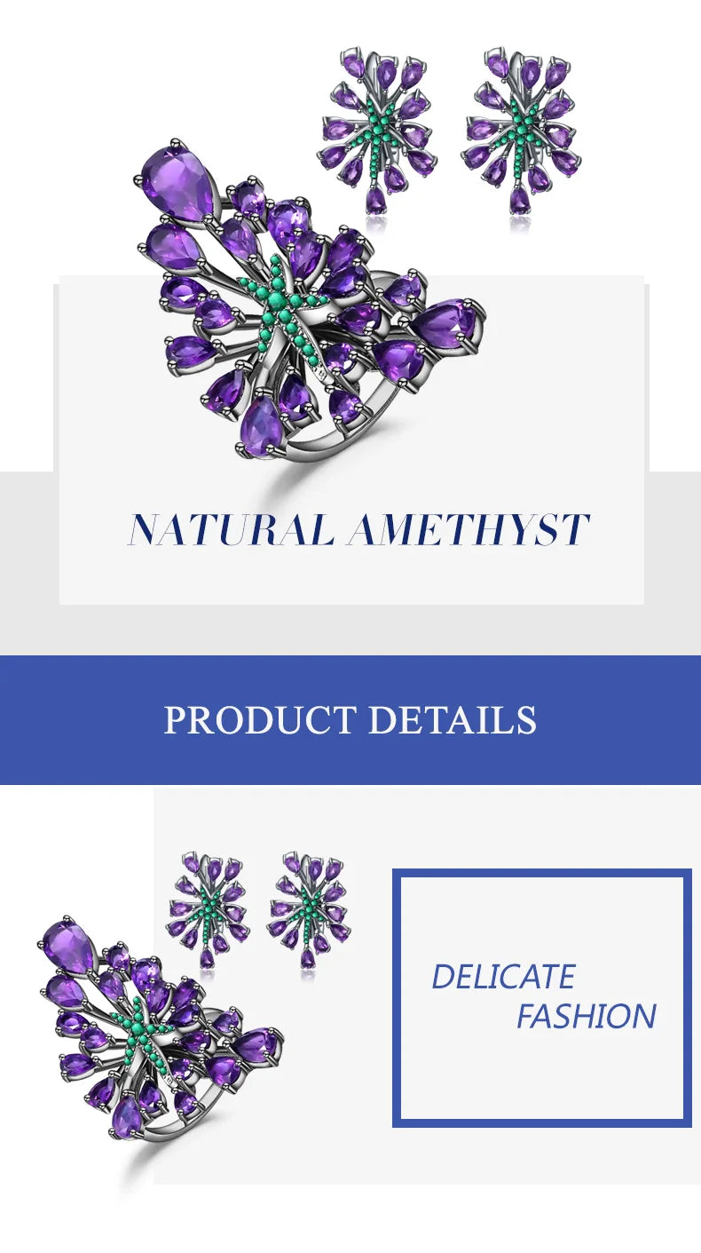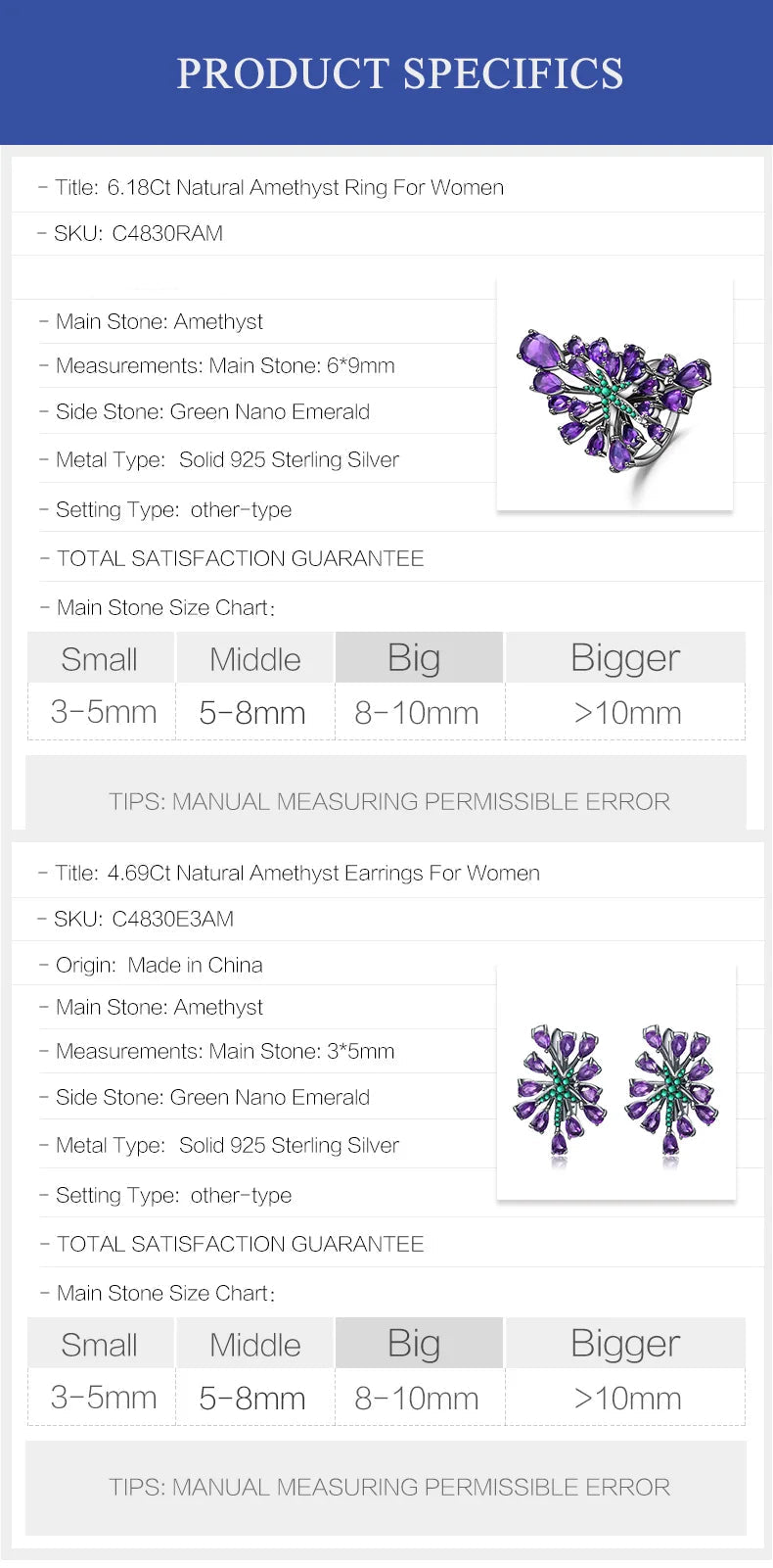 - الأحجار الرئيسية: الجمشت الطبيعي (الأحجام: من 6×9 مم إلى 3×5 مم)