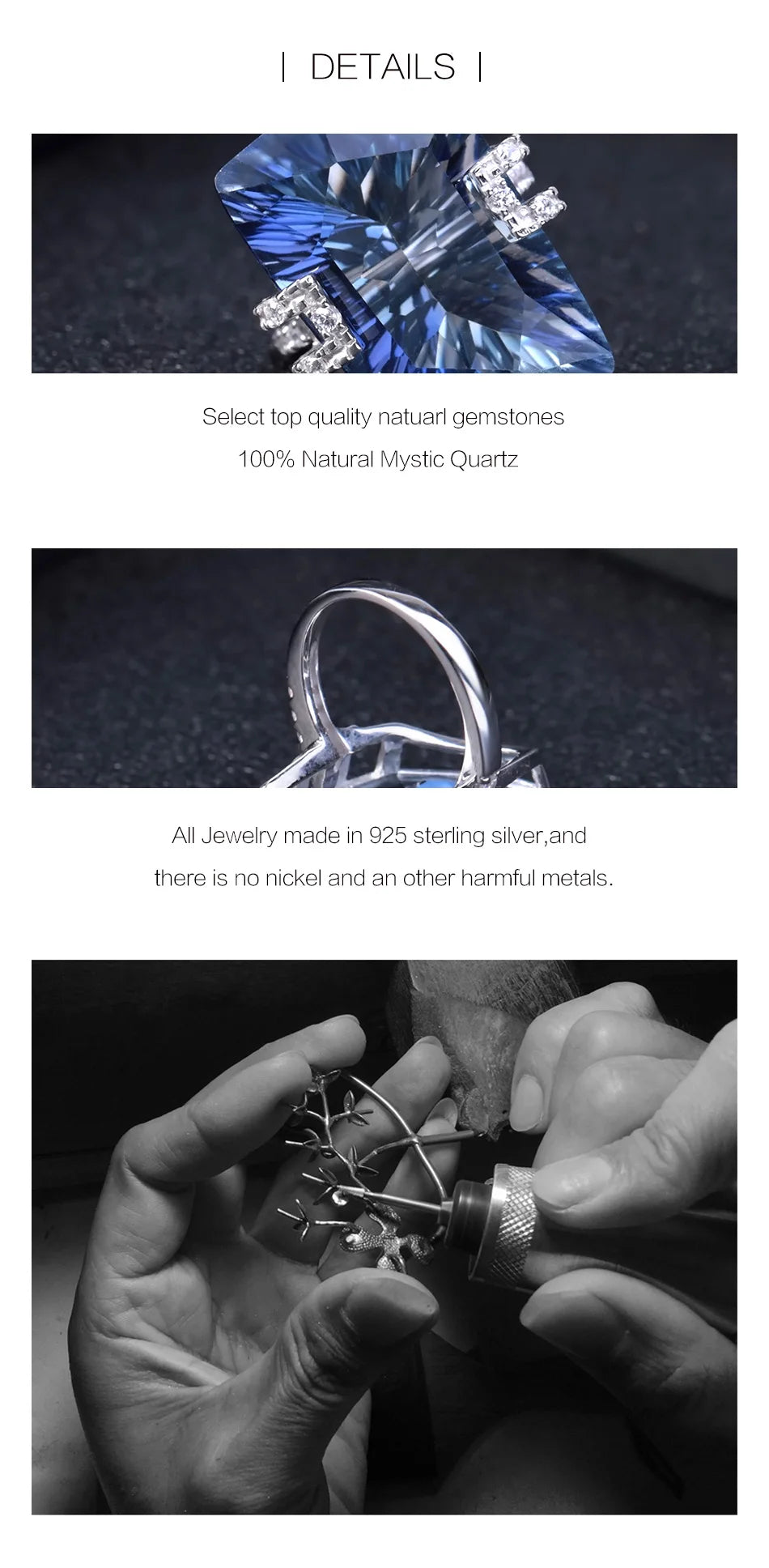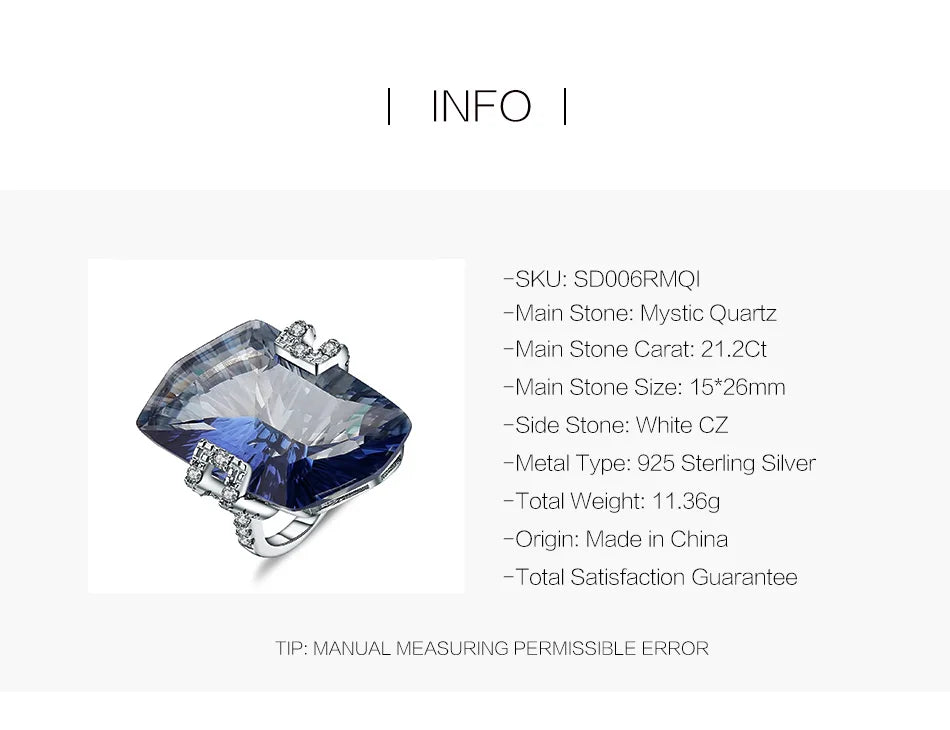 - الحجر المركزي: 21.20 قيراط من الكوارتز الأزرق الصوفي الطبيعي (15 × 26 مم)