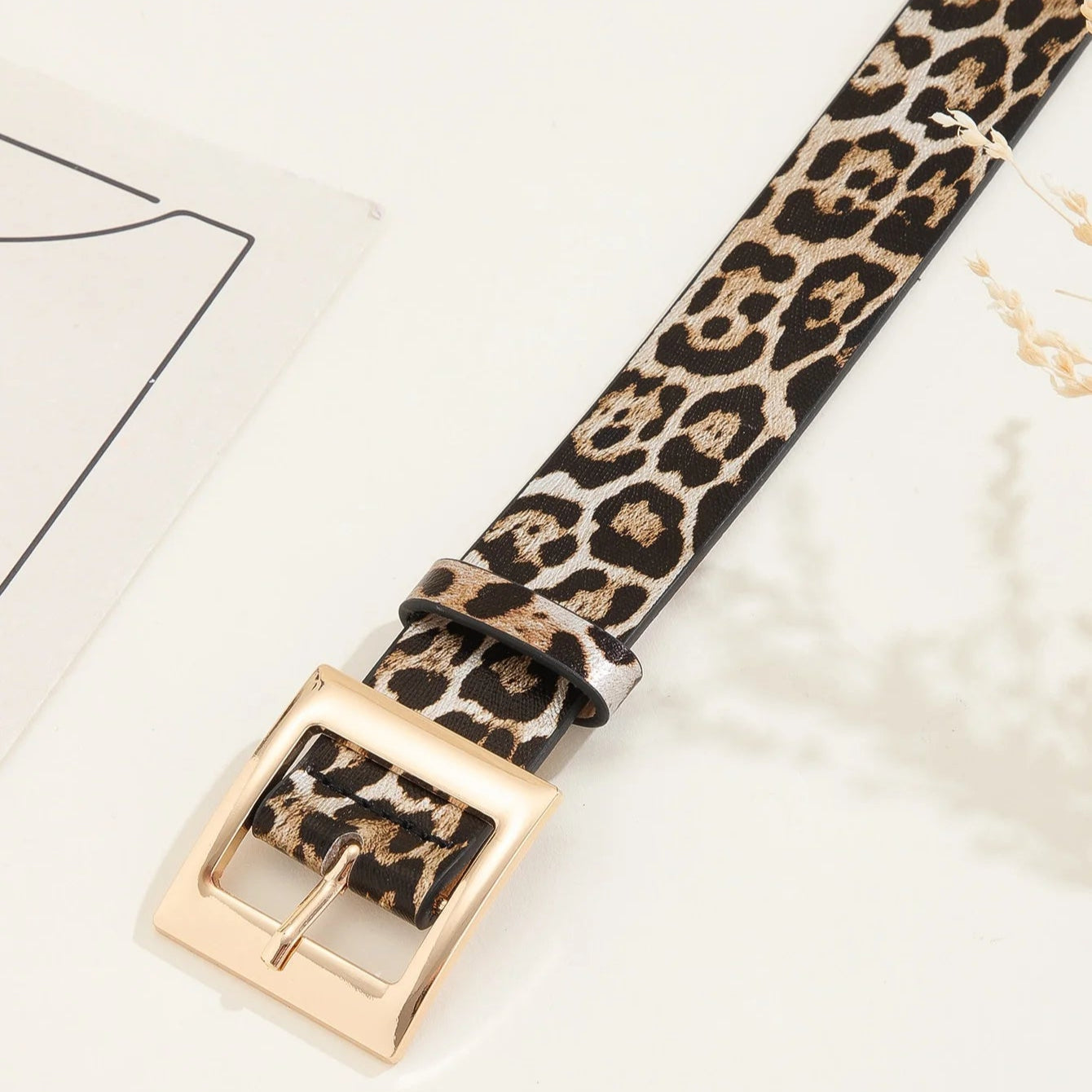 حزام مطبوع بنقشة النمر الكلاسيكية، مصمم من جلد صناعي فاخر وبإبزيم معدني ذهبي مصقول. بعرض 3.2 سم، ينساب بسهولة مع الجينز أو الفساتين ليمنح لمسة جريئة لا تُنسى. خفيف، مرن، ومثالي لإطلالة عصرية تحمل قوة وأناقة الطبيعة.