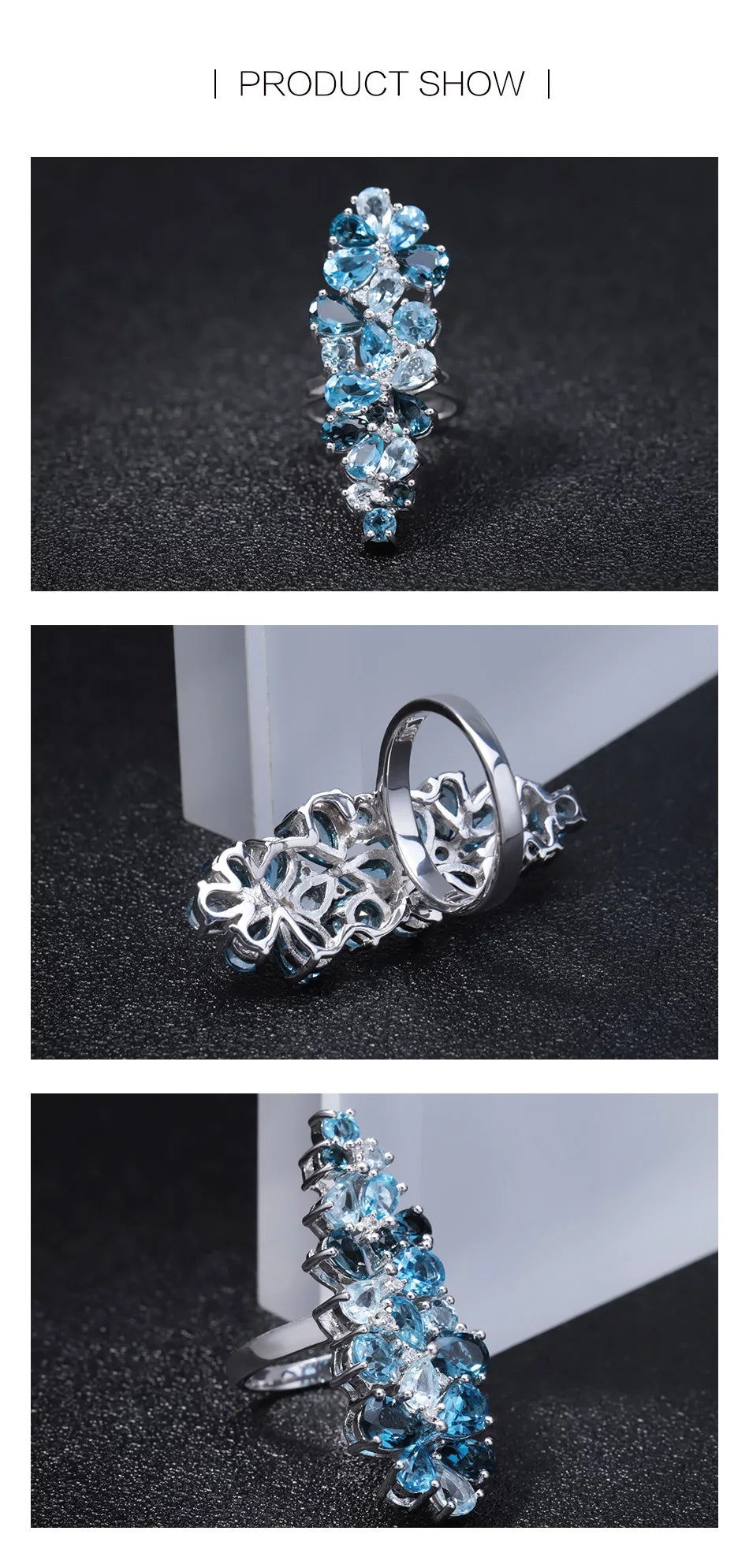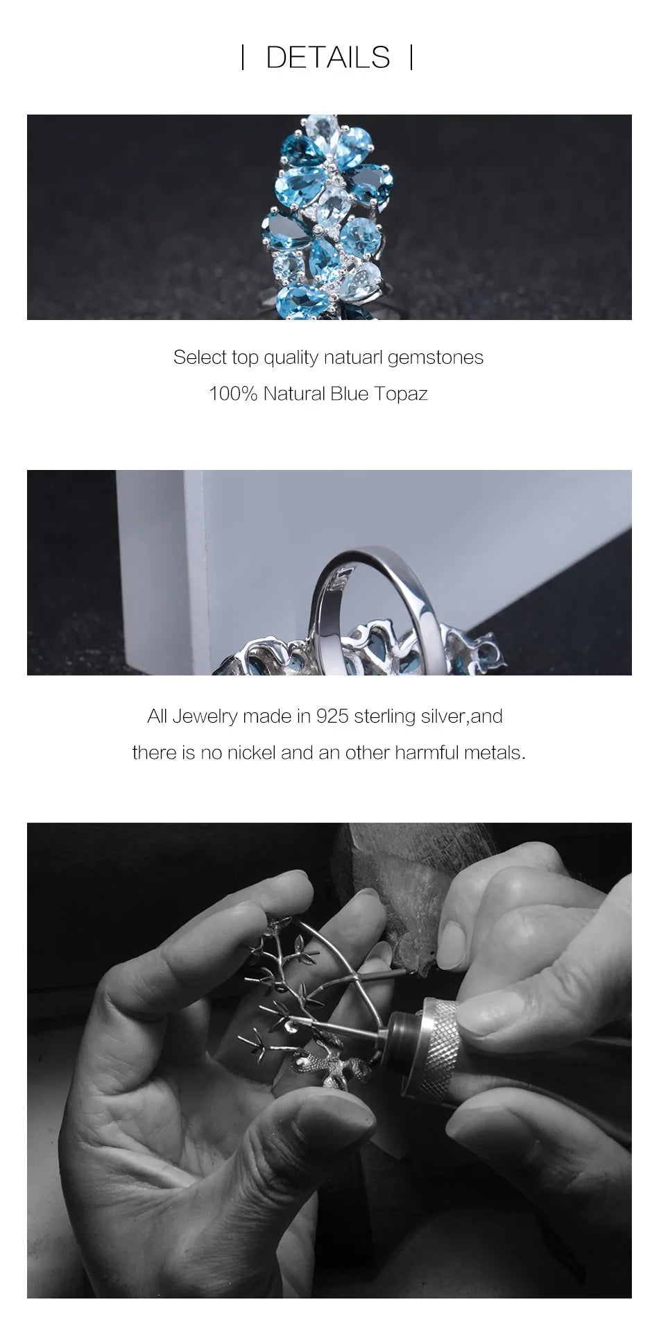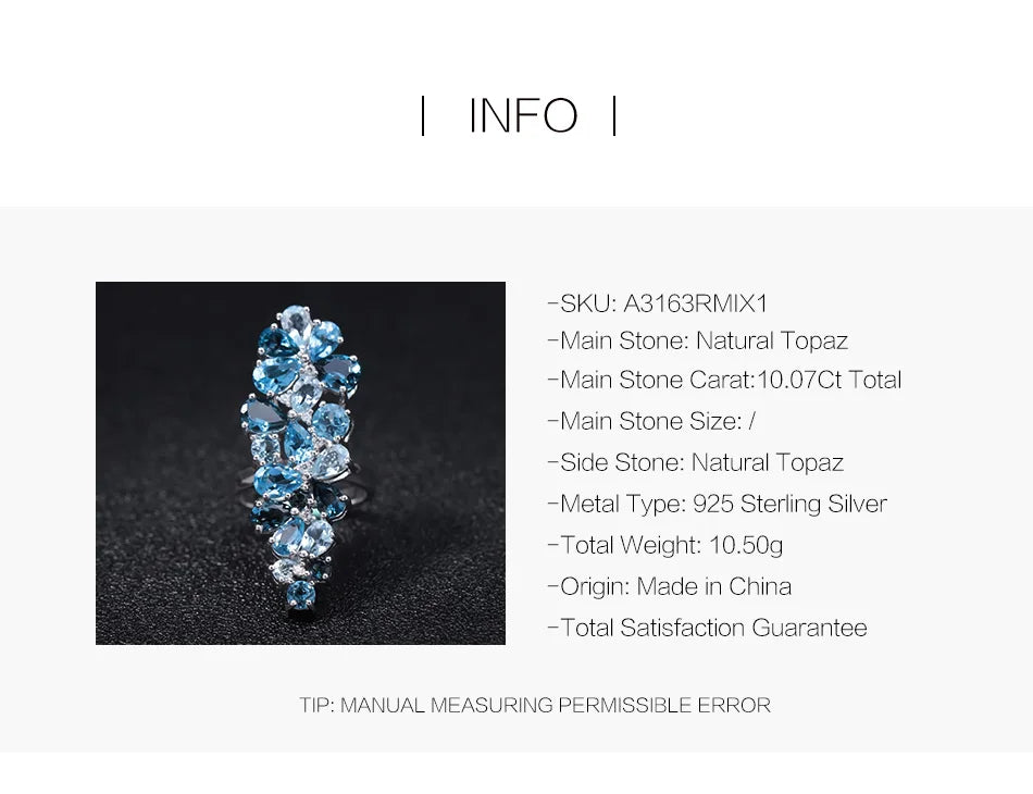 - يتميز بأحجار التوباز الأزرق اللندني الطبيعي مع لمسات من التوباز السويسري والأزرق السماوي