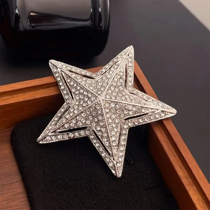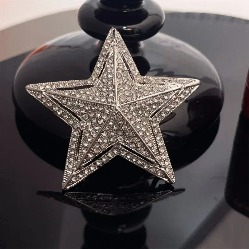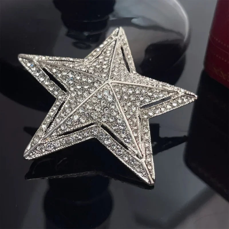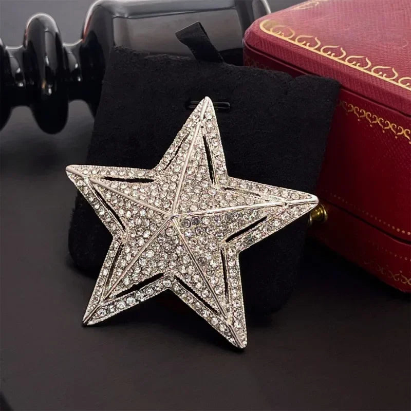 تتألق Stellara بجمال سماوي فاخر — بروش نجمة خماسية مرصع بكريستالات فاخرة عالية الجودة. قاعدته المعدنية بلون ذهبي فينتاج تمنحه لمسة فاخرة خفيفة الوزن لكنها لافتة، مثالية للبلايزر، الأوشحة أو الإطلالات المسائية.