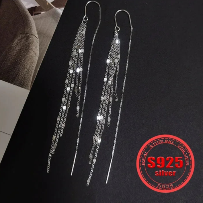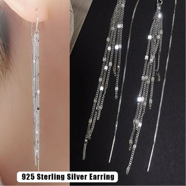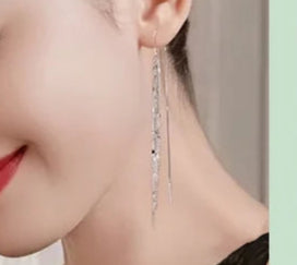 - أقراط متدلية على شكل حرف U بتصميم شرابة من الترتر