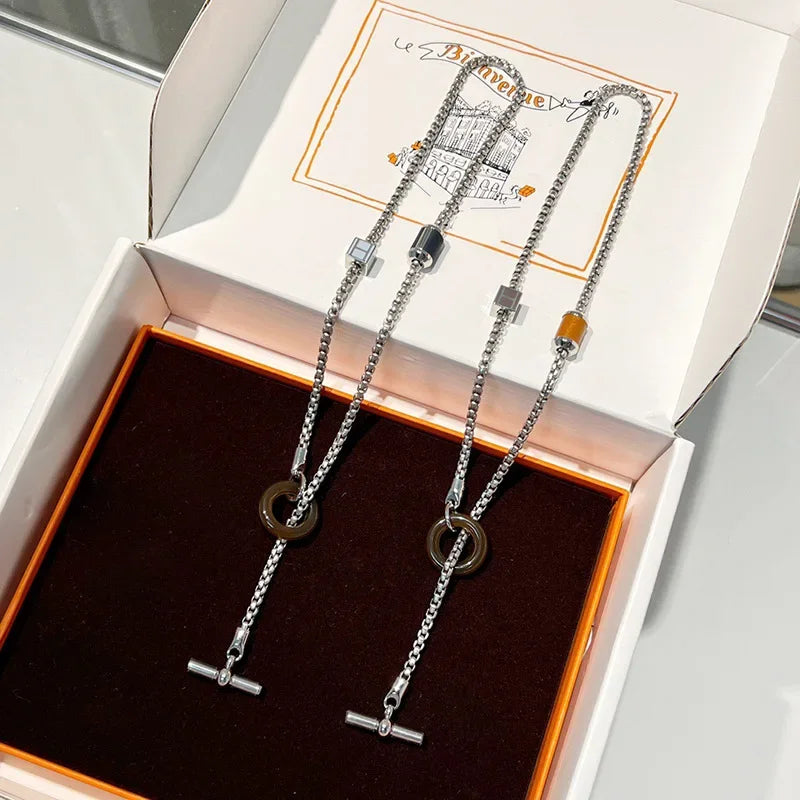 بجرأة متباينة ونسيج غني، تُعيد قلادة VELTORI Noctavé تعريف البساطة العصرية. تجمع هذه القلادة بين الفضة الإسترلينية عيار 925 ولمسات من السيراميك الأسود الداكن وجلد البقر، وتدعمها مشبك OT الكلاسيكي لإغلاق محكم وتصميم متوازن.