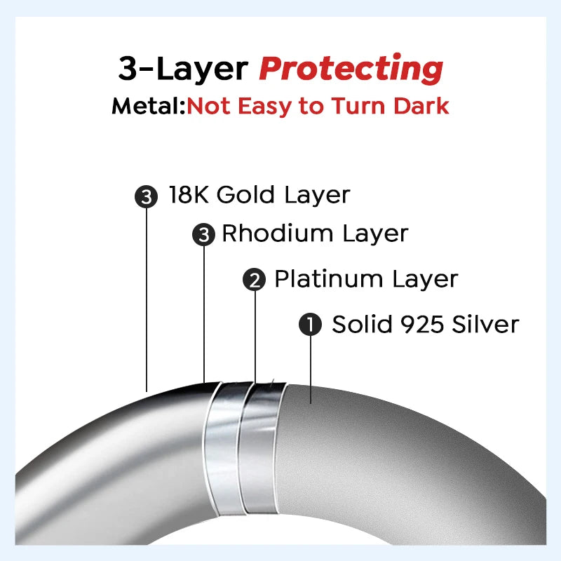 Chain: Solid 925 sterling silver with 18K gold + rhodium + platinum triple-layer protection