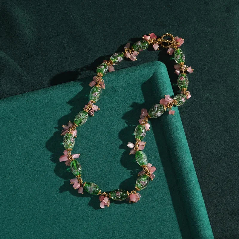 Soft sparkle, sweet color — a love story in crystal. VELTORI Rosabelle blends bowknot crystals, pink stones, and green glass beads in a romantic necklace-and-earring duo. Crafted in 24K gold-plated copper, hypoallergenic and tarnish-resistant — a playful yet elegant gift for anniversaries, weddings, or celebrations.