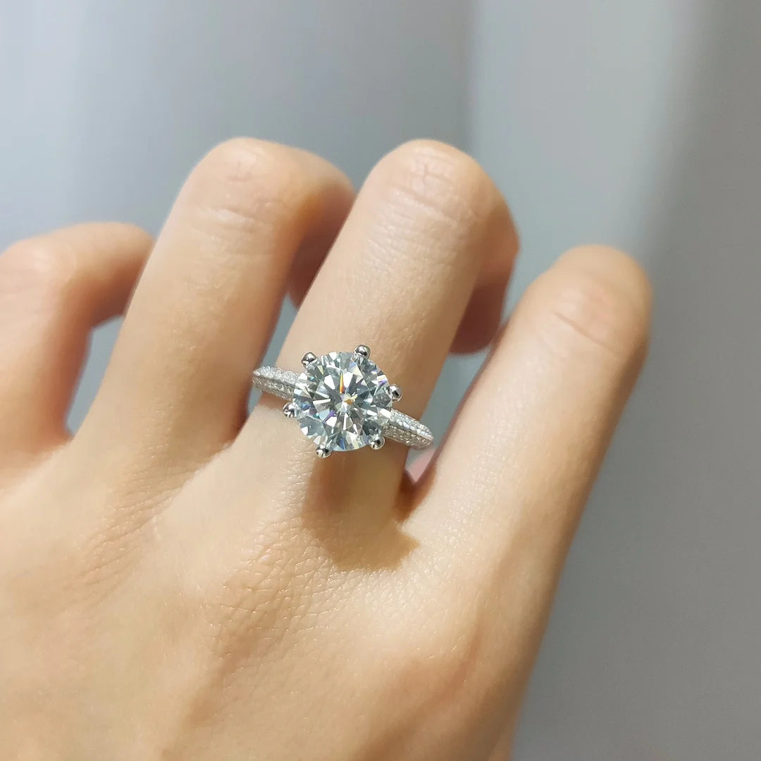 Center Stone: 3CT moissanite, D color, VVS1 clarity, excellent cut