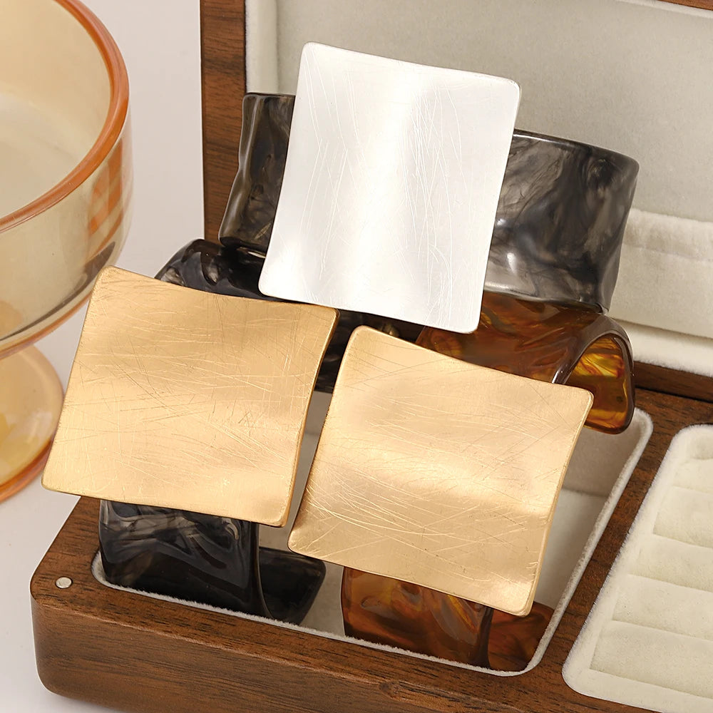 - Design: Wide open cuff with sculptural square face (6.5 × 4.6 cm)
