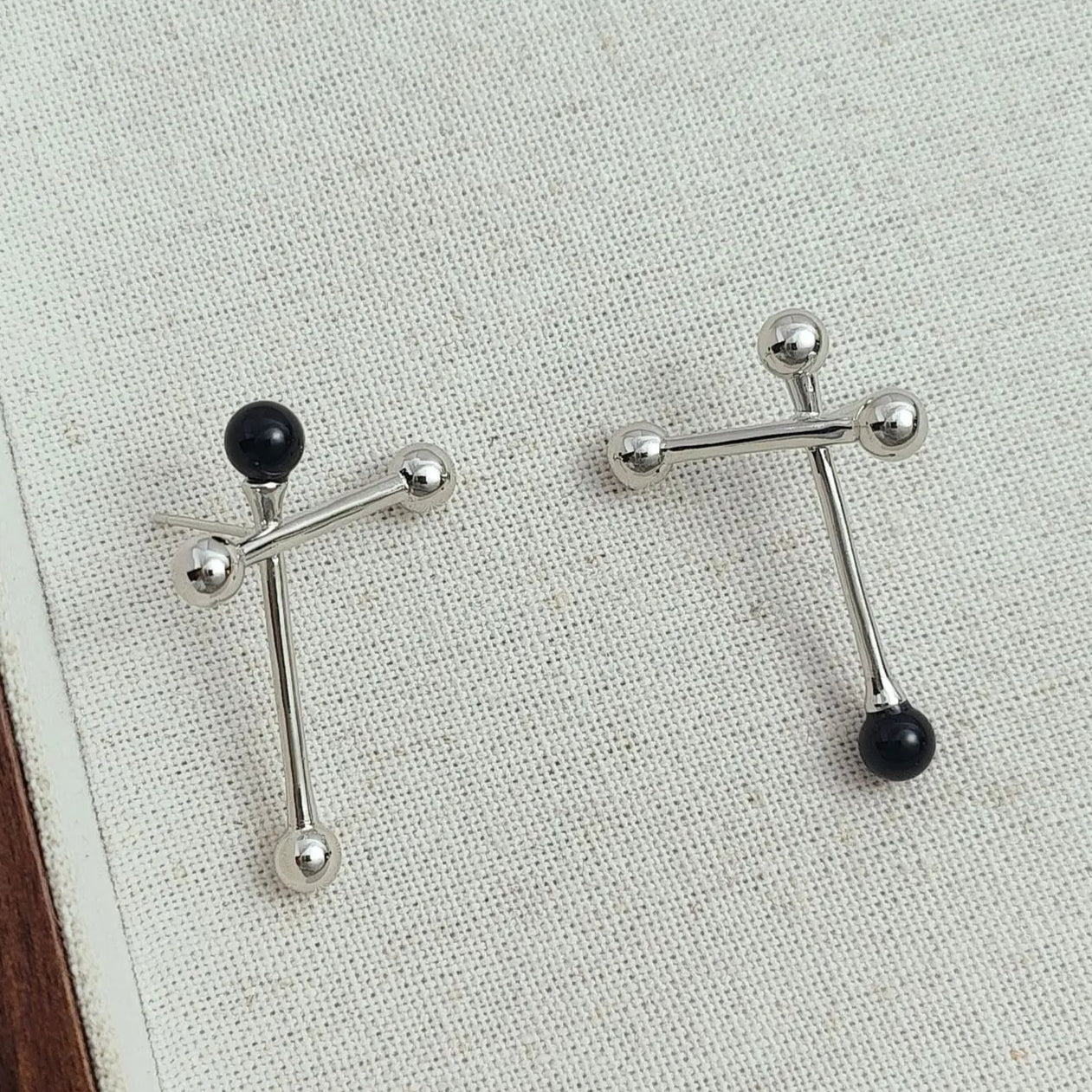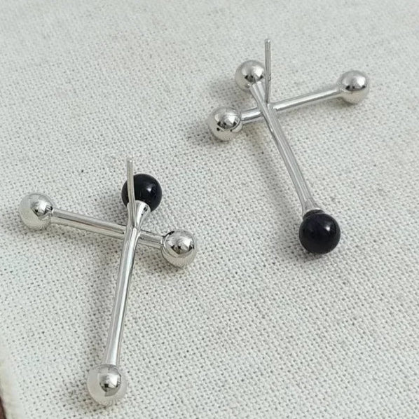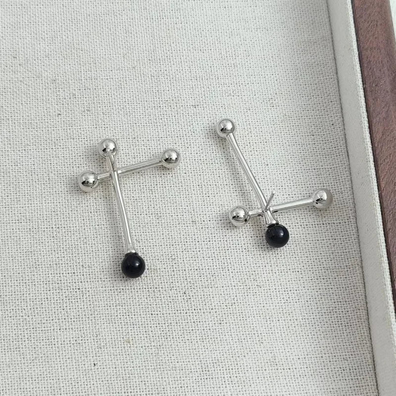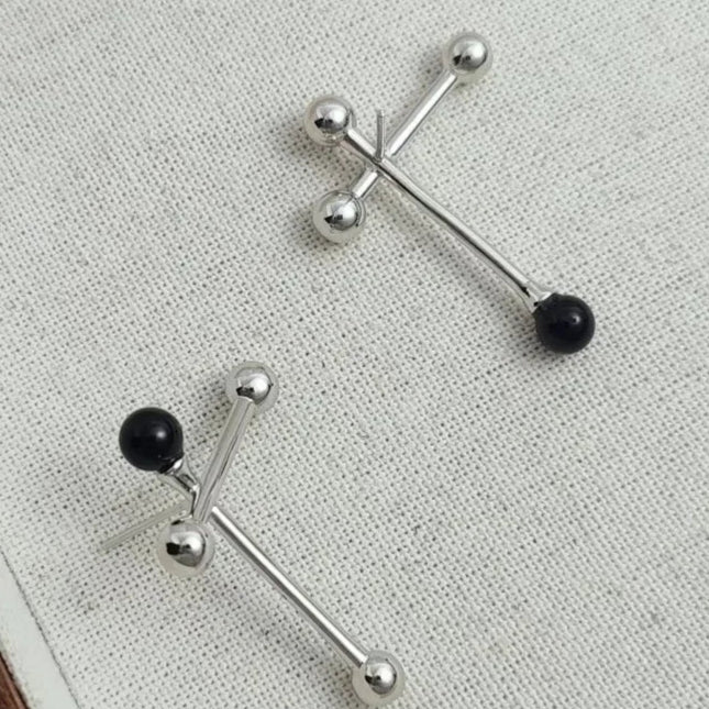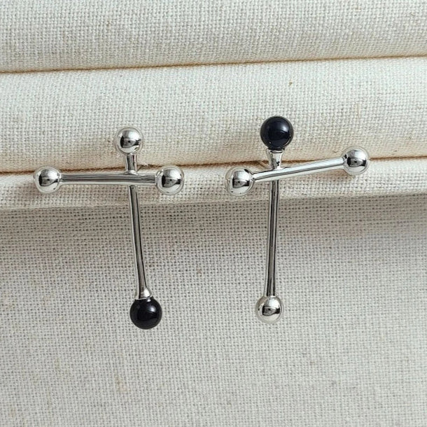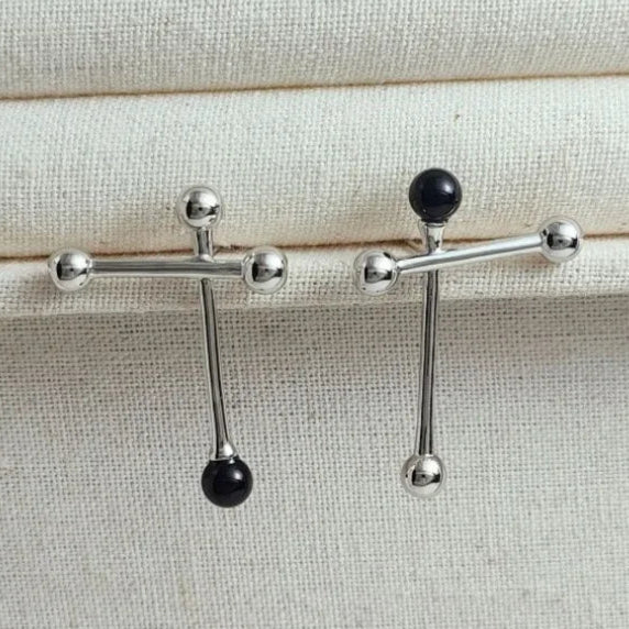 Astrevia captures the art of contrast with sculptural asymmetry and luminous black agate accents. Polished finish with 925 silver needles ensures comfort and elegance, crafted for modern muses who seek confidence in bold, unconventional harmony.