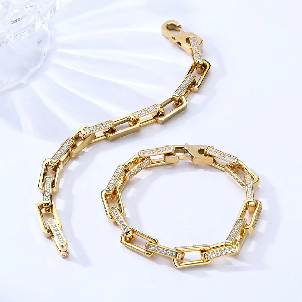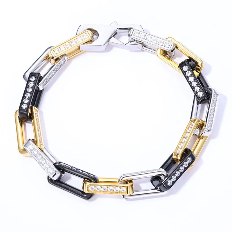 Geometric Link Bracelet | 316L Steel & High-Clarity Zircon