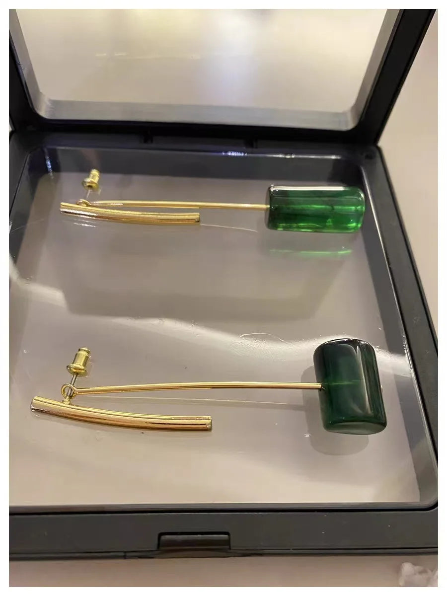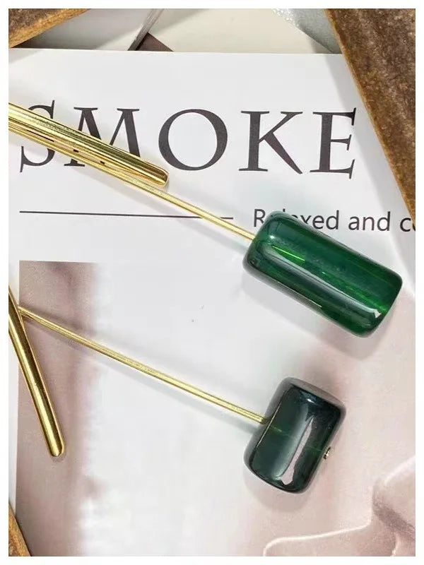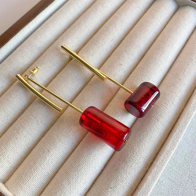 Aurivane features sleek golden bars paired with polished glass beads in emerald green or deep ruby red. Lightweight, chic, and designed for effortless elegance — perfect for daily wear or casual evenings.