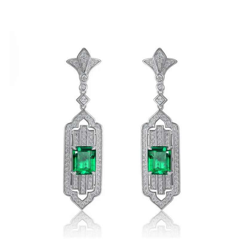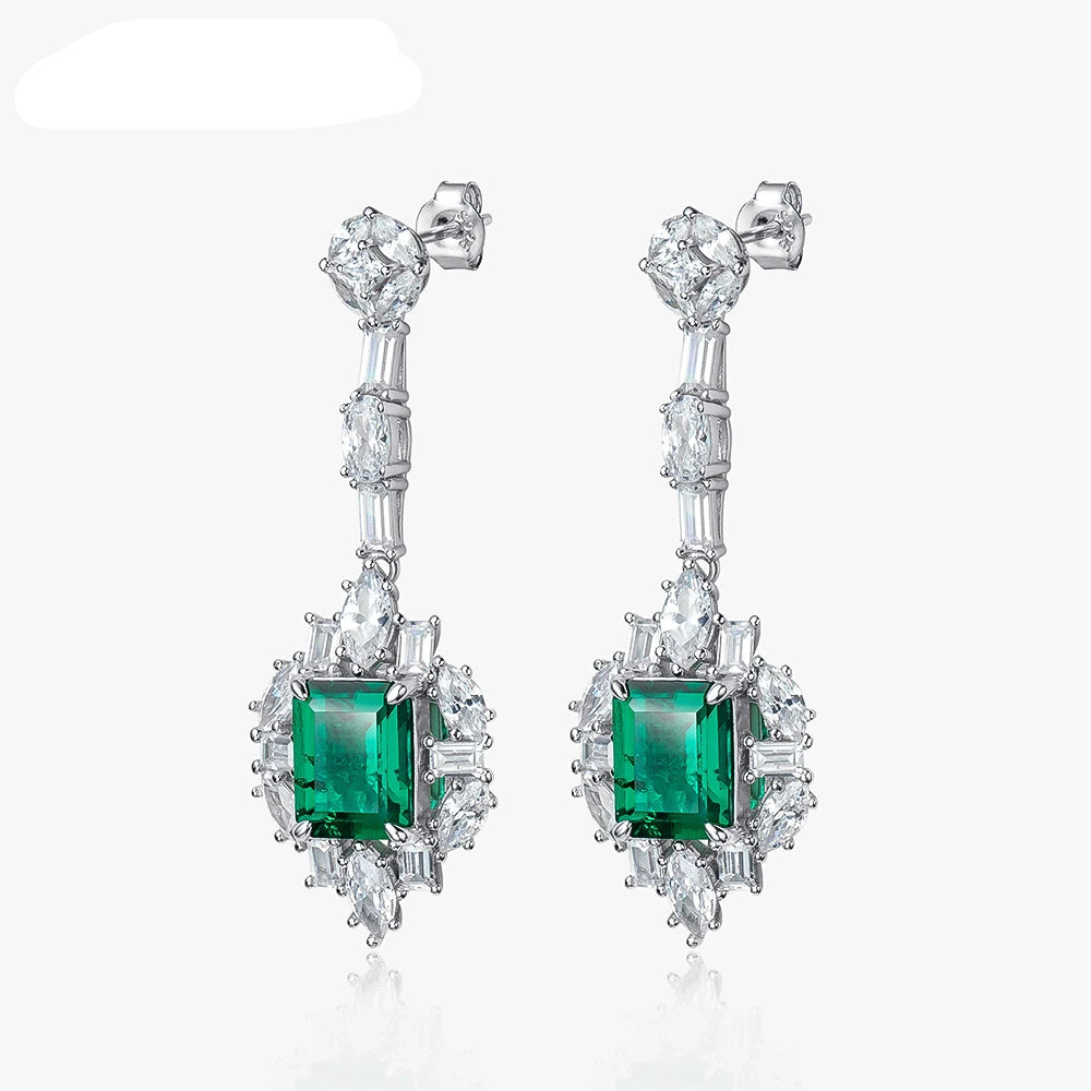 Metal: Certified 925 sterling silver, mirror-polished Main Stones: Emerald-cut center stones (up to 7ct, 9×7mm) Side Stones: Diamond-brilliance accents Designs: Drop & Chandelier, length 36–71 mm Weight: ~5 g – 17 g depending on design Finish: Hypoallergenic, skin-safe, lasting shine Collection: 5+ luxurious models, same refined specs