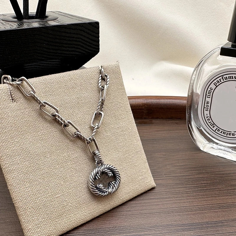 Handcrafted from solid 925 sterling silver, Eryndra reflects modern minimalism and ancient spirit. Its oxidized finish gives a timeless depth, while the twisted round pendant evokes movement and heritage — made for those who value quiet strength and design clarity.