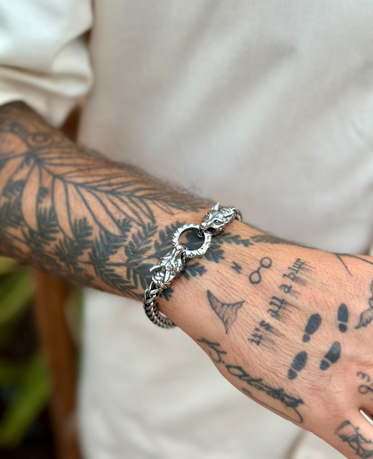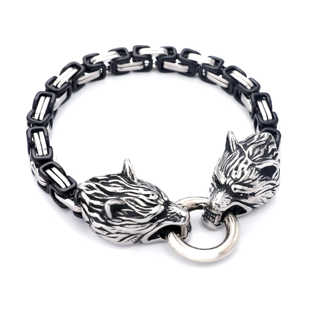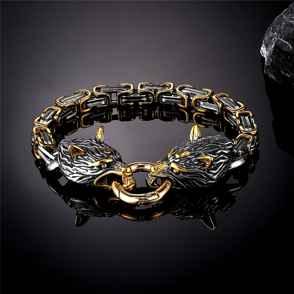 Type: Viking-inspired bracelet Material: Stainless steel, silver or gold-tone finish Design: King chain with detailed wolf head terminals Closure: Secure spring-ring clasp Lengths: 19cm, 21cm, 23cm