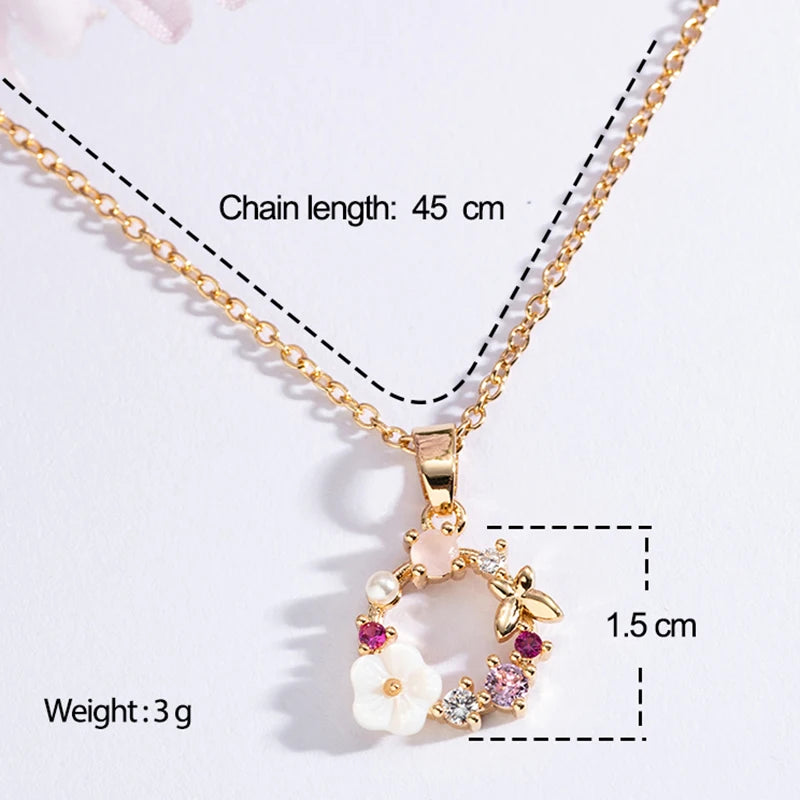 This jewelry set pairs a floral pendant necklace with matching earrings, crafted with natural shell blossoms, luminous pearls, and precision-cut crystals. Finished in radiant gold, rose gold, or silver, it captures timeless romance in a feminine circle of light.