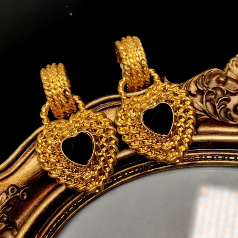 Aurélienne clip-on earrings are crafted with exaggerated woven heart silhouettes in radiant gold plating, accented with alexandrite stone. Vintage-inspired and bold in presence, they are hypoallergenic, nickel-free, and designed for comfort without piercings — a timeless gift of passion and style.