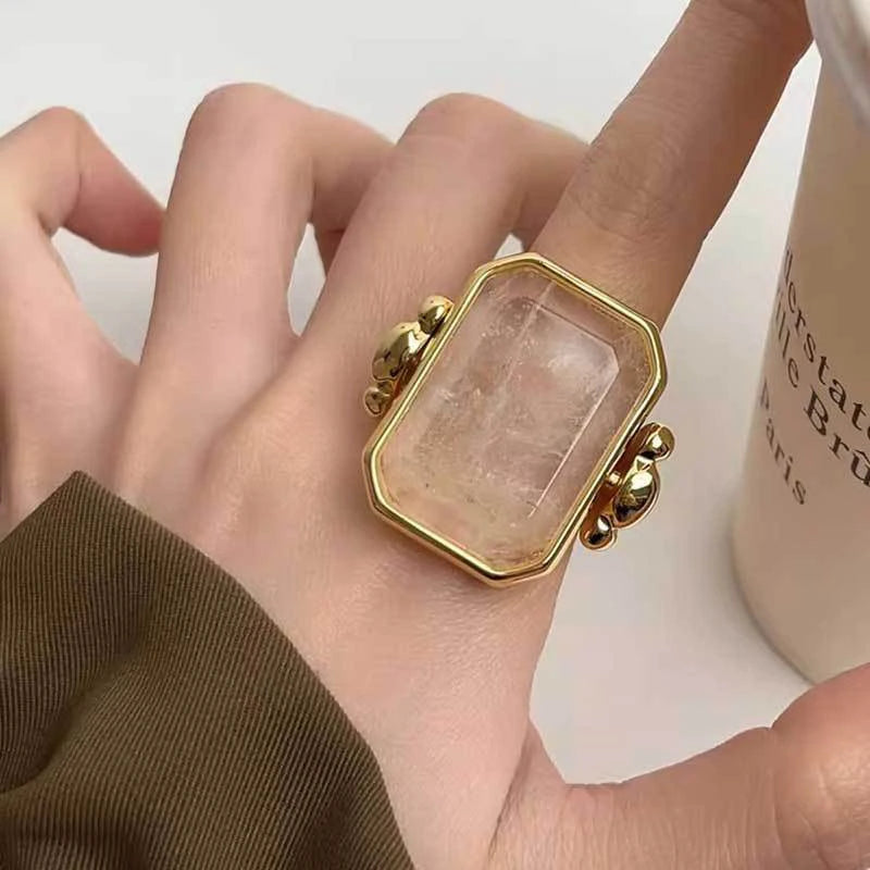 Asterra is a bold statement ring featuring a luxury rectangle-cut stone, framed in 18K gold or silver plating. Its geometric silhouette, inspired by vintage artistry, radiates strength and sophistication. ideal for standout looks, events, or timeless gifts.