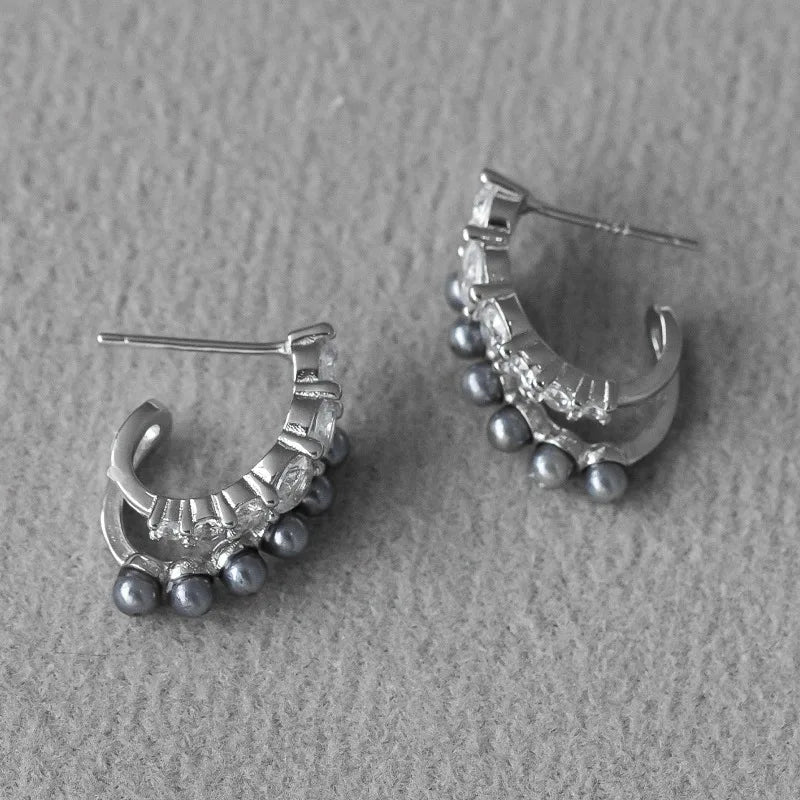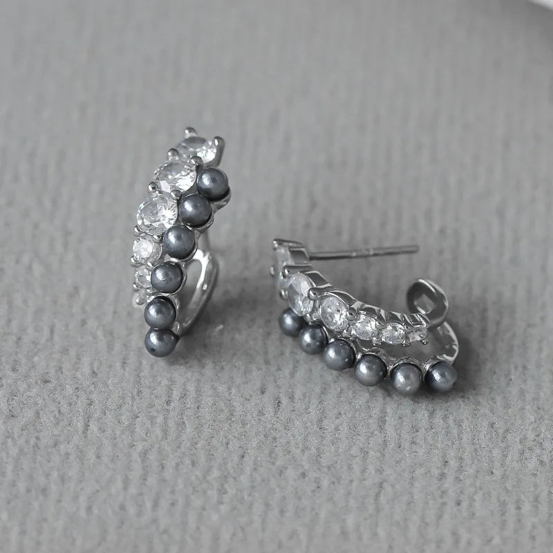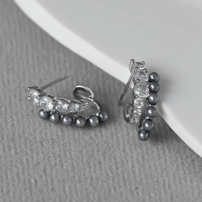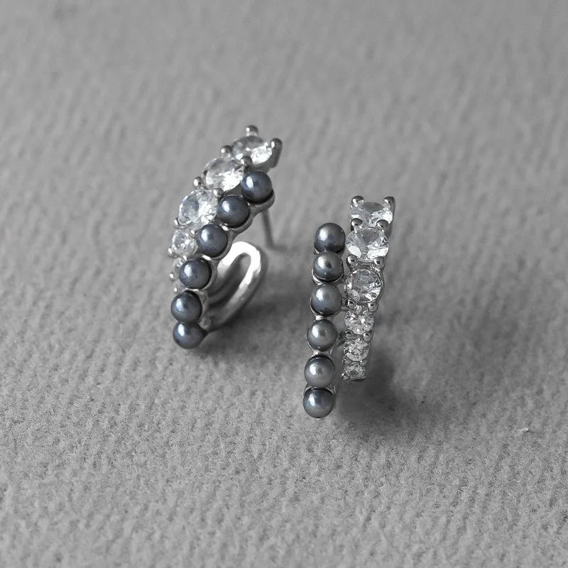 Lunéra fuses the soft shimmer of gray pearls with the brilliance of crystals in a romantic silhouette. A polished setting with push-back design ensures refined comfort, perfect for parties, gifts, and timeless daily elegance.