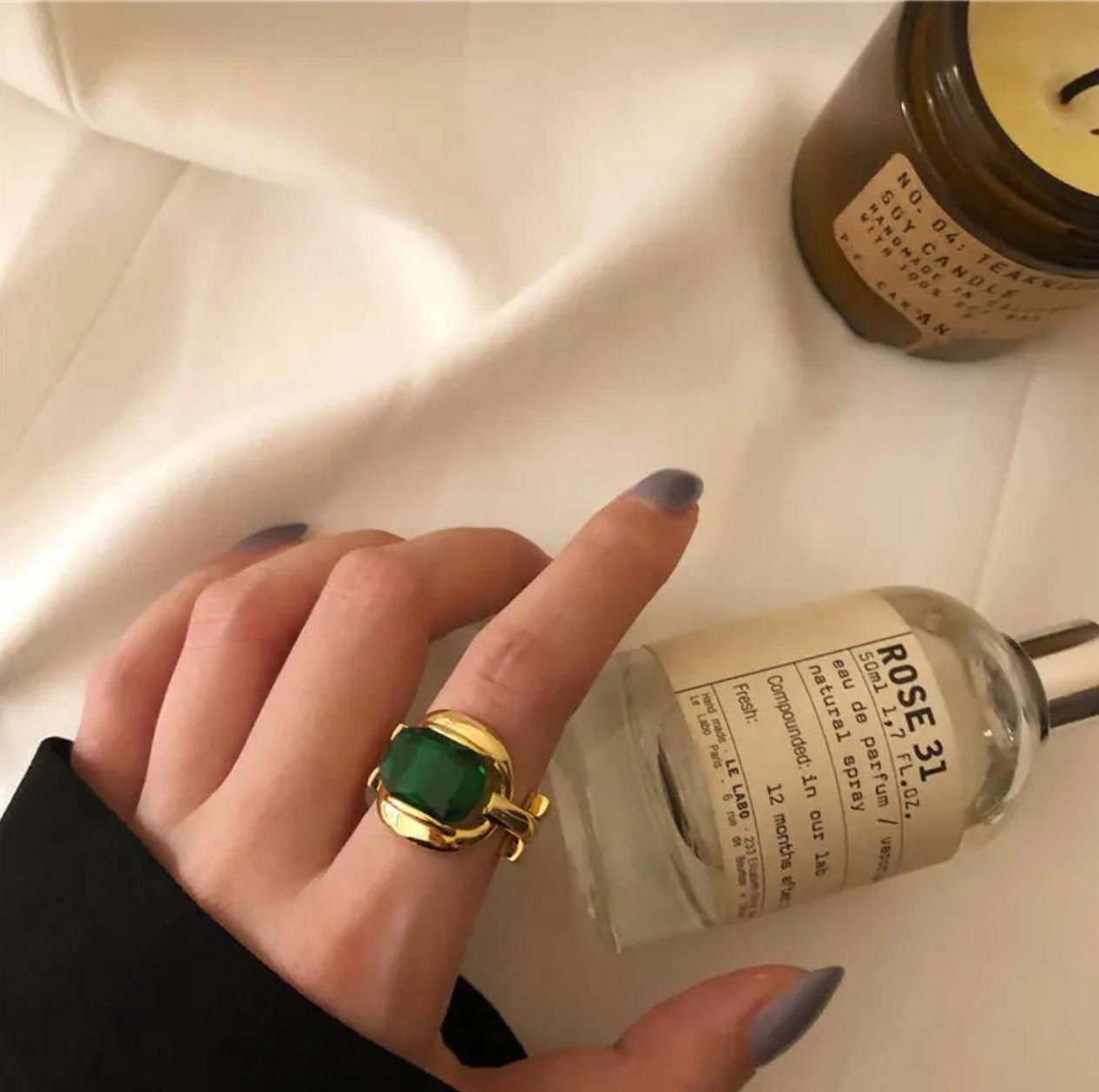 Émeraudelle dazzles with a 24K gold-plated band crowned by a vivid 5A green zircon. Its bold oval cut evokes vintage Parisian glamour with a modern edge, made to command attention.
