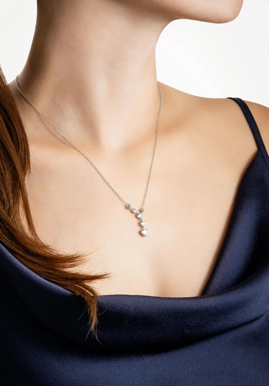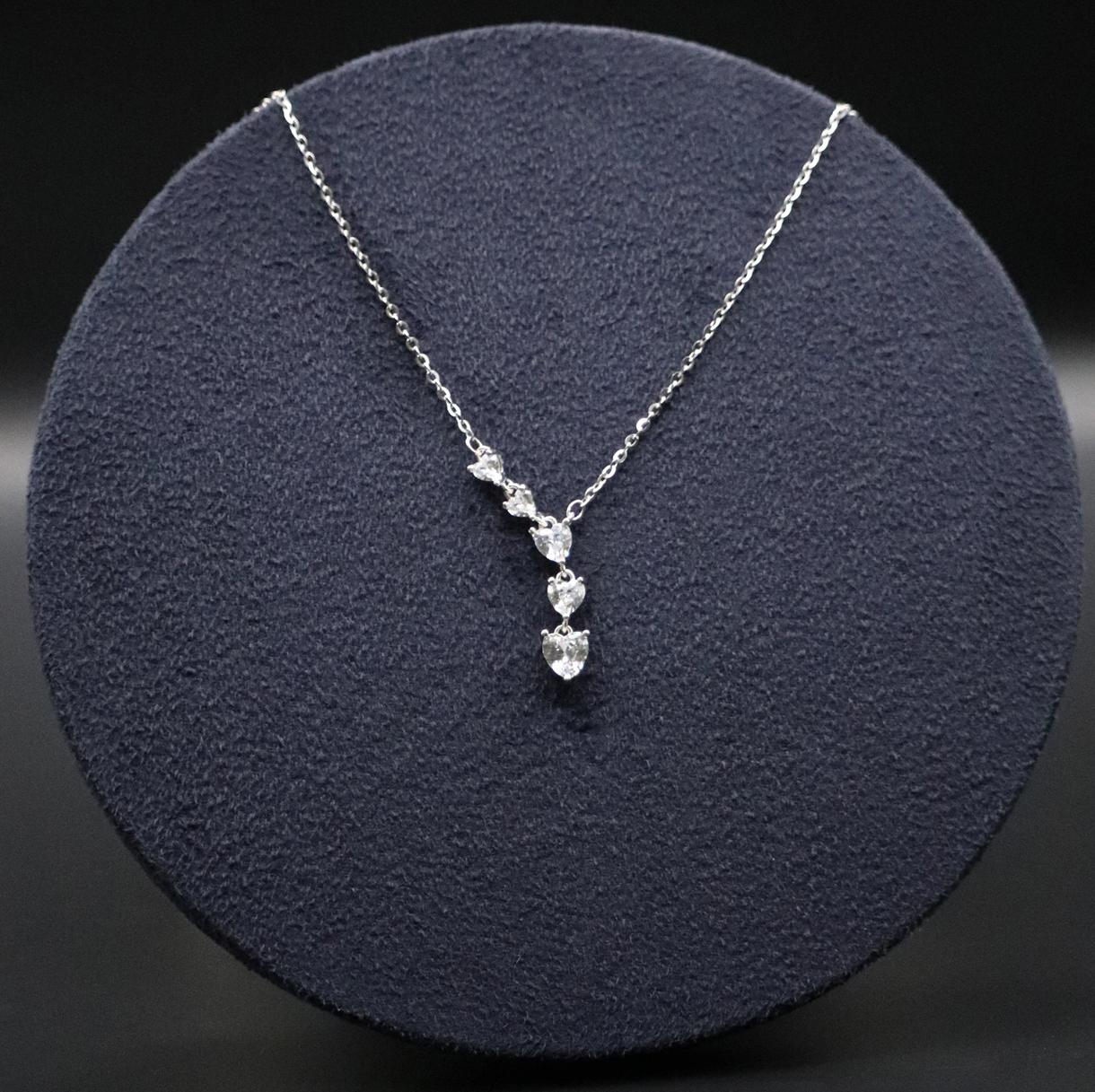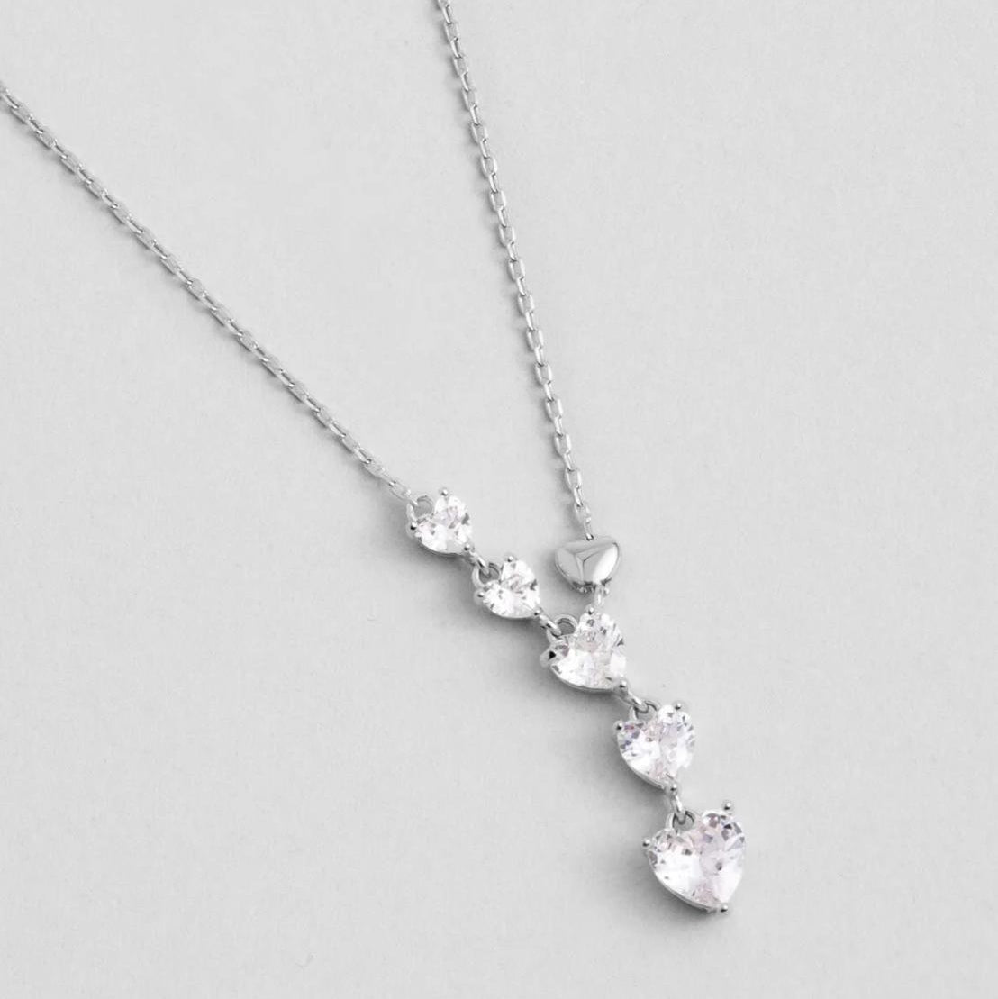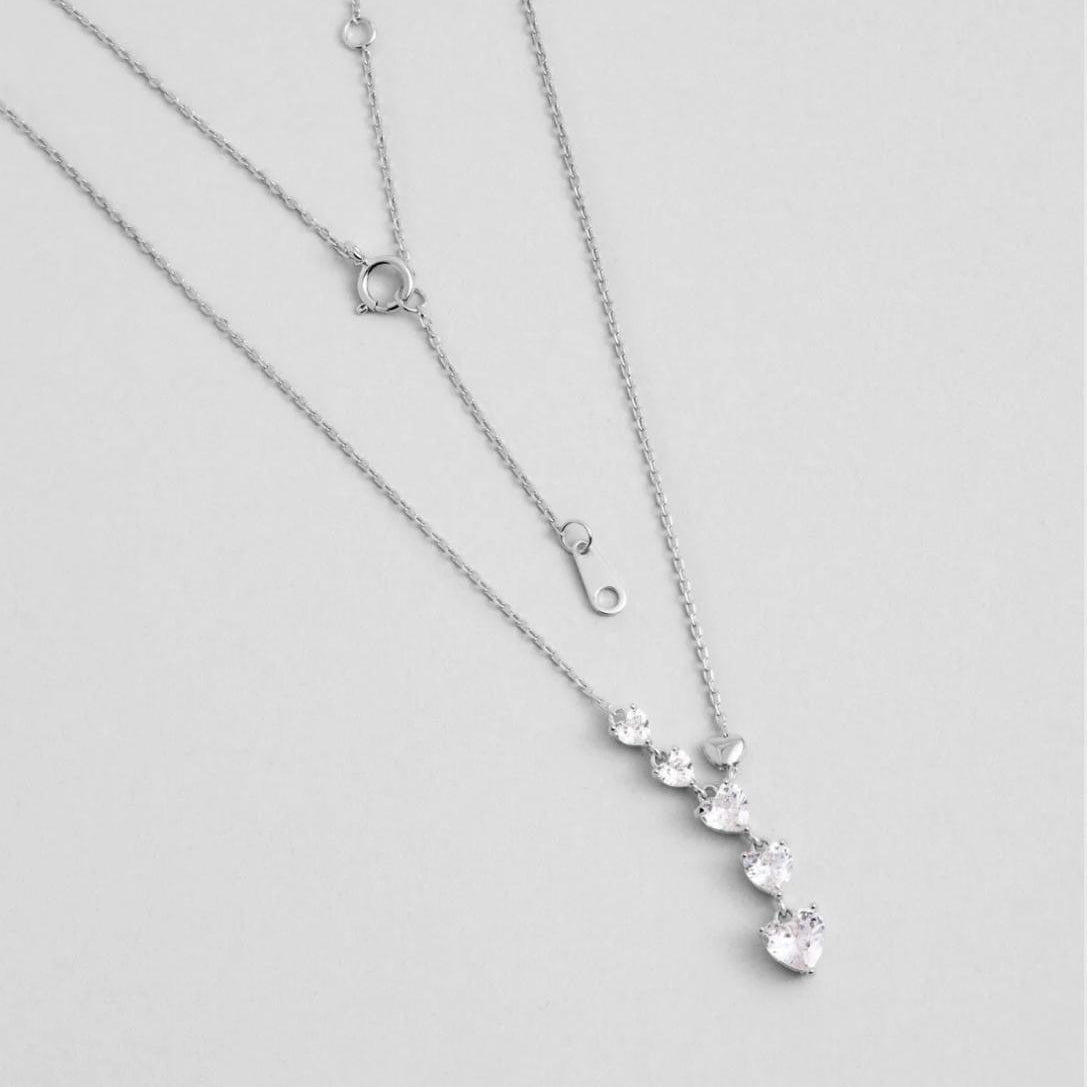 Handcrafted from 925 sterling silver, this Y-pendant necklace (2.5 × 0.5 cm) flows with luminous zircon stones in heart-shaped cuts. Adjustable at 16+4 cm and feather-light at ~2.2 g, it brings a refined sparkle whether worn solo or layered.