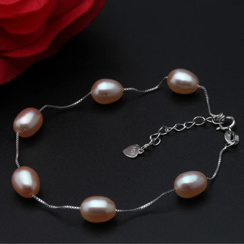 Hand-selected AAA freshwater pearls flow gracefully along a sterling chain in the Lunea design. Each rice-shaped gem reflects quiet light and timeless emotion. A symbol of purity and refinement, it captures the serene beauty of heritage elegance — crafted to move softly with every gesture.