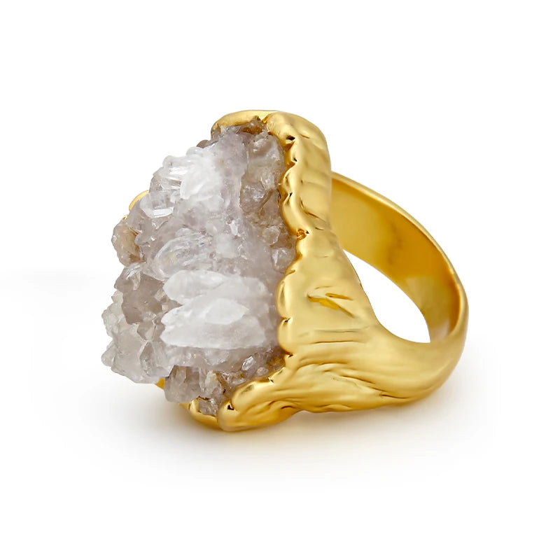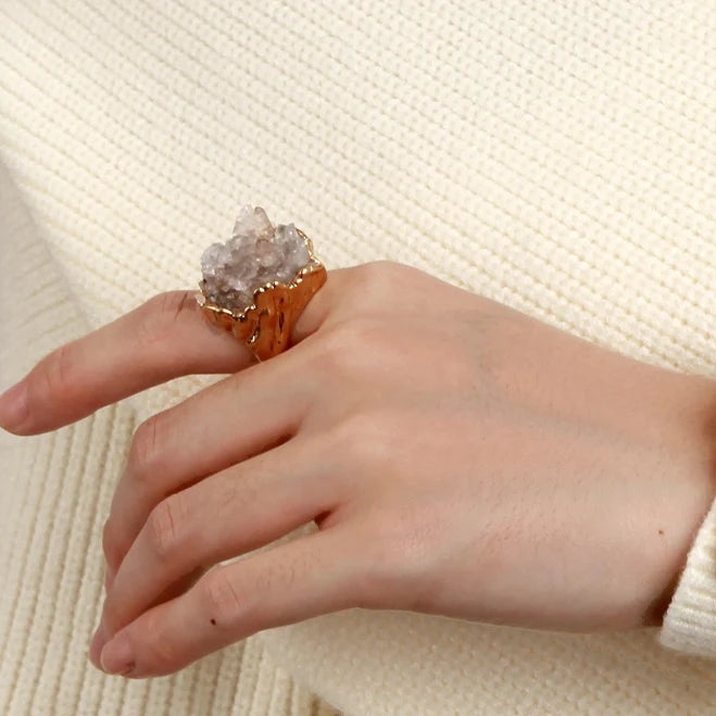 Lunesséra is a statement ring plated in 18K gold and adorned with a hand-selected natural gemstone. Each piece is unique, radiating artistry and rarity — perfect for gifts, parties, or refined daily elegance.