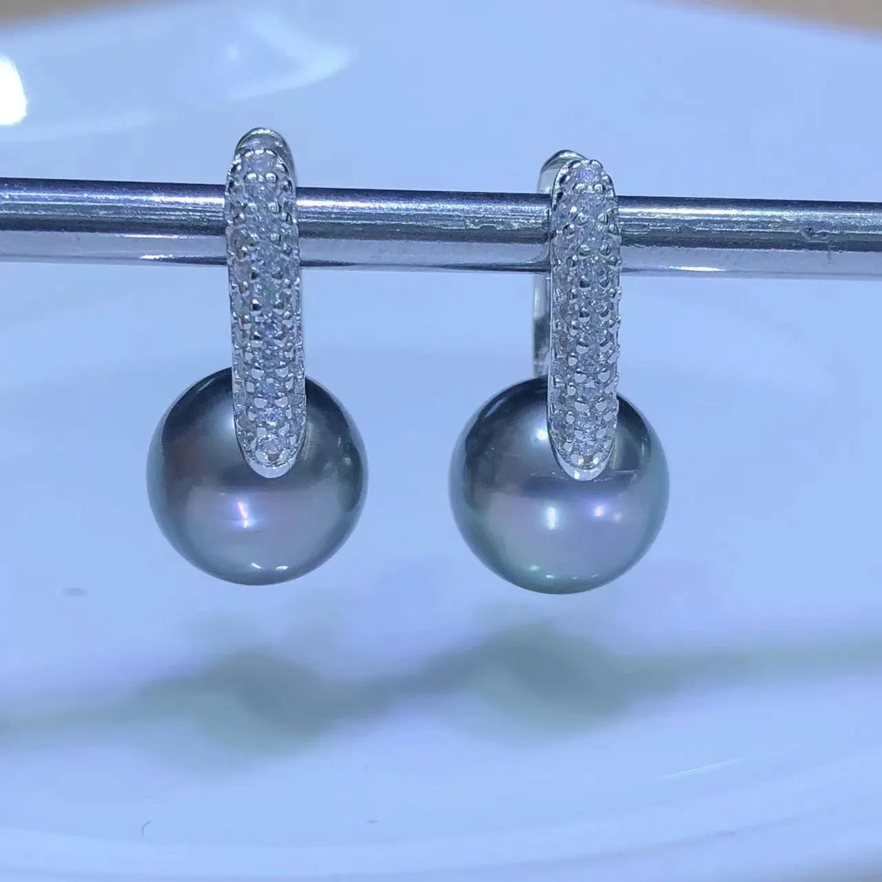 Noctéra captures the depth of the ocean with AAA+++ grade South Sea black pearls, renowned for their metallic luster and round perfection. Each pearl rests in a 925 sterling silver hoop, paved with shimmering 5A cubic zirconia, and finished in your choice of white or yellow gold plating. A secure leverback clasp ensures graceful wear from dawn to dusk. A rare treasure, made for elegance that endures.