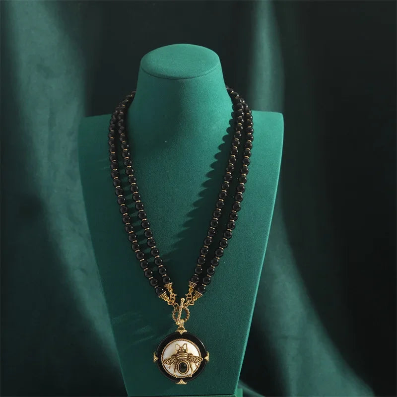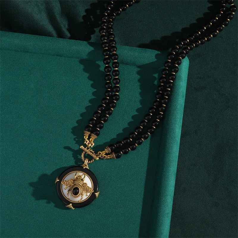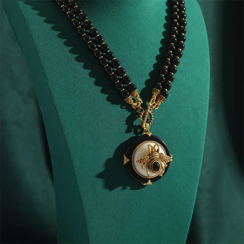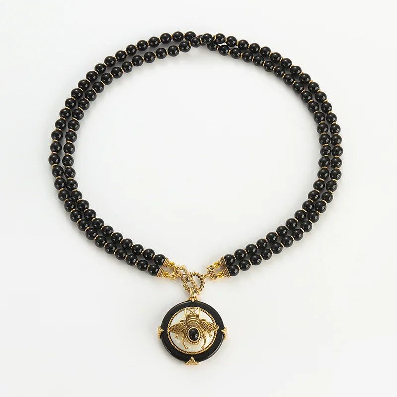 NOIRÉA is a handcrafted vintage-inspired jewelry set, featuring deep black agate beads and literary elegance—designed to adorn the woman who speaks in shadows and shines in silence.