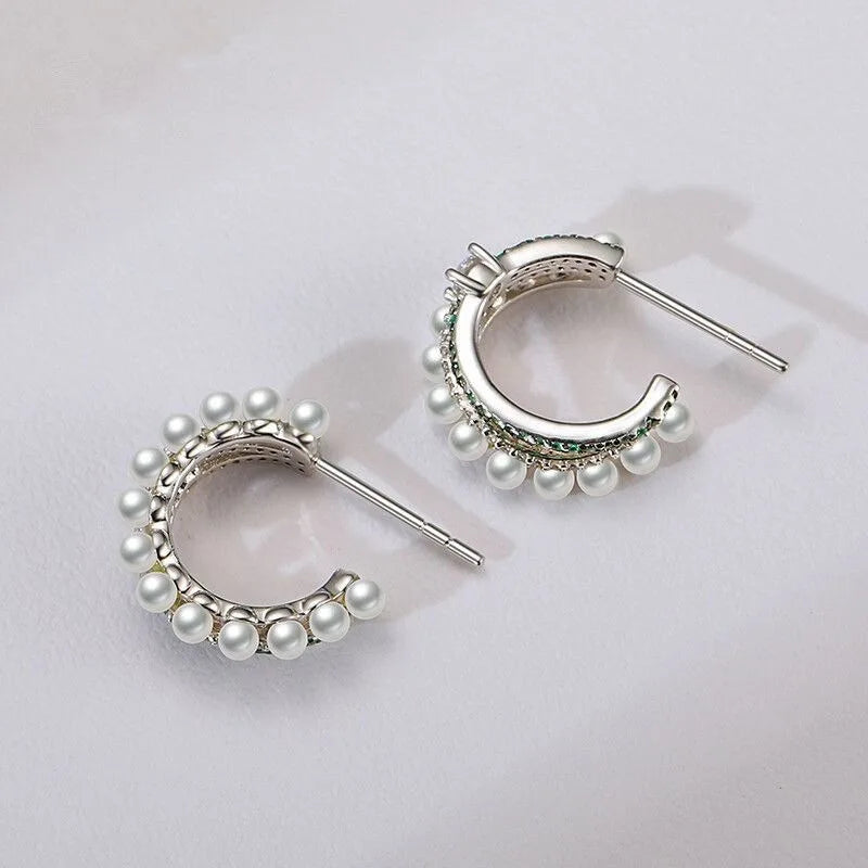 Émeraudea pairs natural freshwater pearls with green zircon and a central white stone, all set in a luminous C-shaped design. Lightweight, refined, and destined to shine.