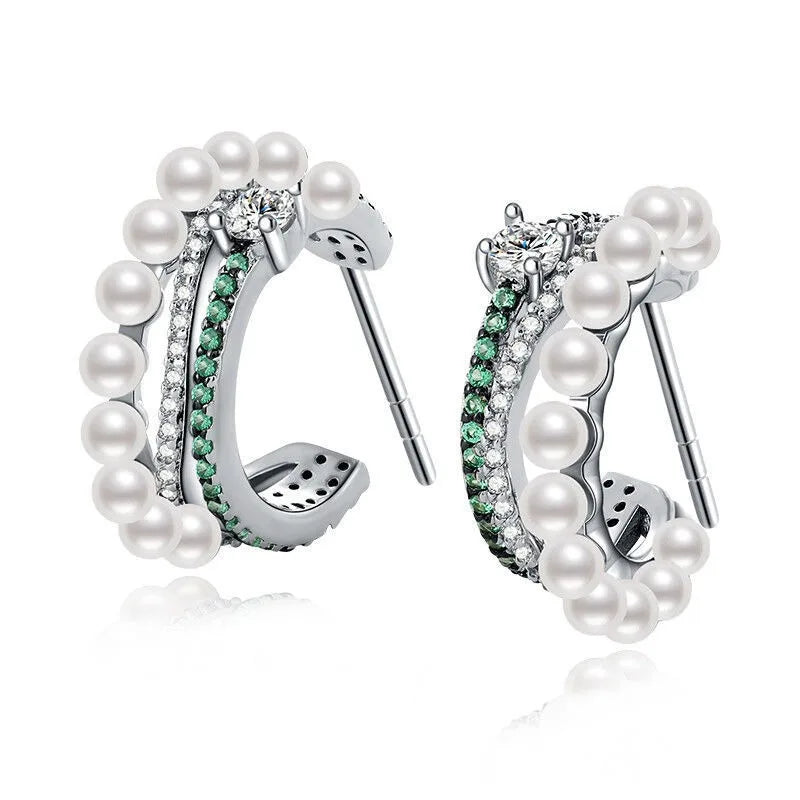 Stones: Freshwater pearls, green zircon, white zircon accent