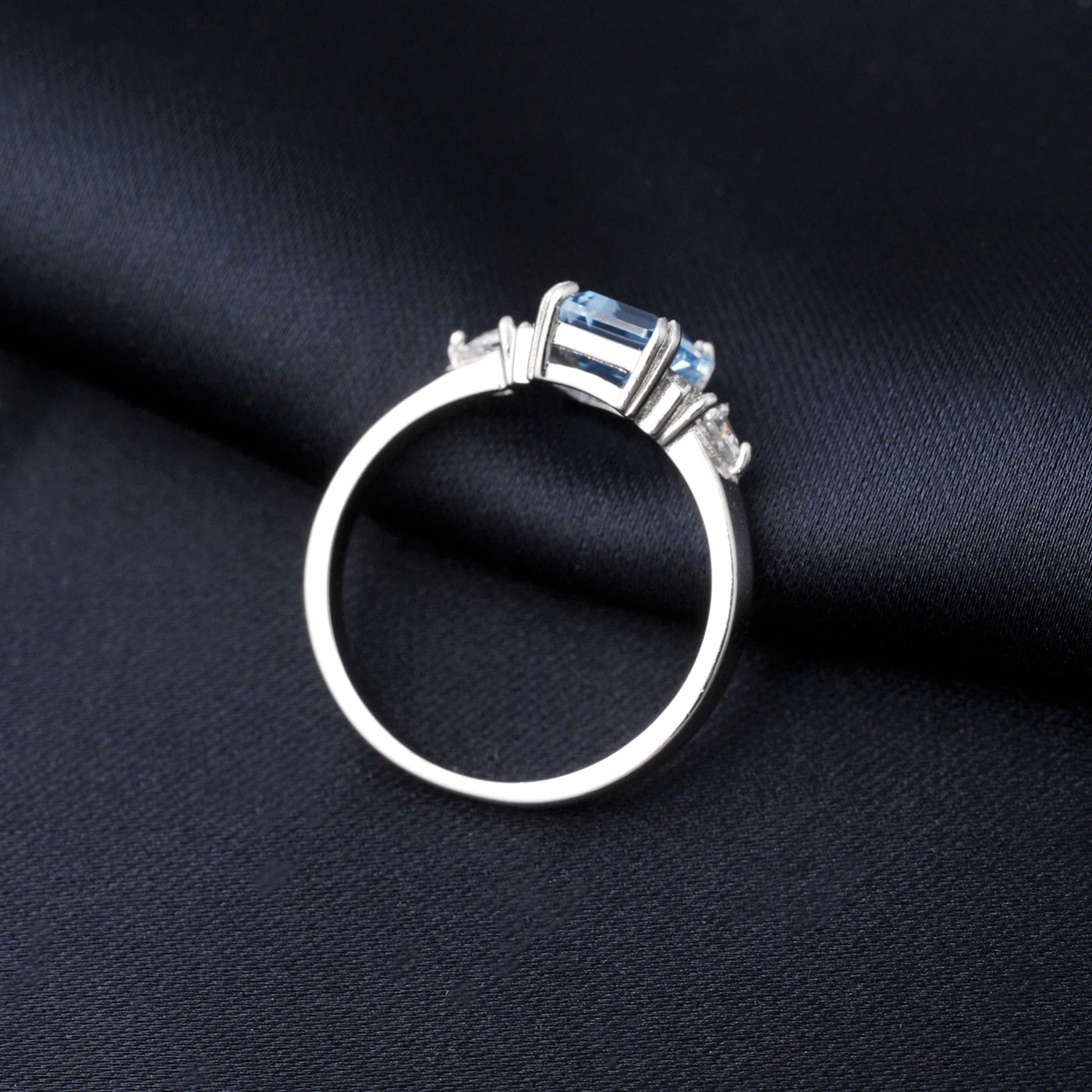Crafted in solid 925 sterling silver, this graceful ring features an emerald-cut natural sky blue topaz (8×6 mm). Secured in a prong setting for brilliance and certified by the Beijing CUG Testing Center, it weighs only 2.64 g — light enough for daily wear, luminous enough for special occasions.