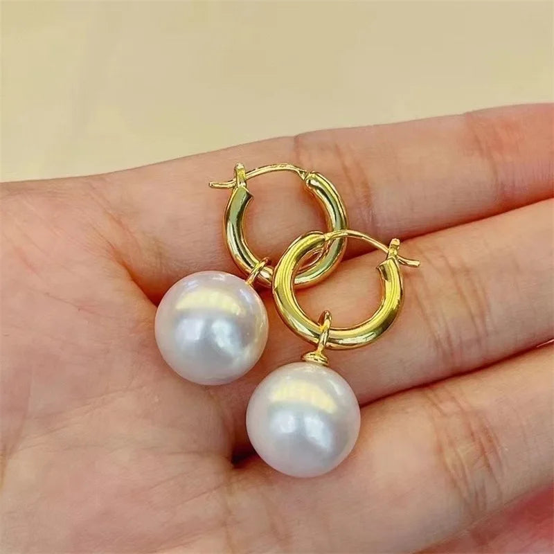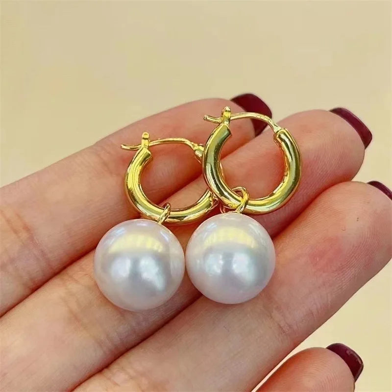 Aurivelle hoop earrings feature AAAA+++ South Sea pearls, perfectly round and luminous, suspended from S925 sterling silver hoops plated in gold. A subtle diamond side accent adds refined sparkle, while secure closures ensure comfort for long wear. Certified by GRA and international labs, these pearls embody luxury and authenticity.