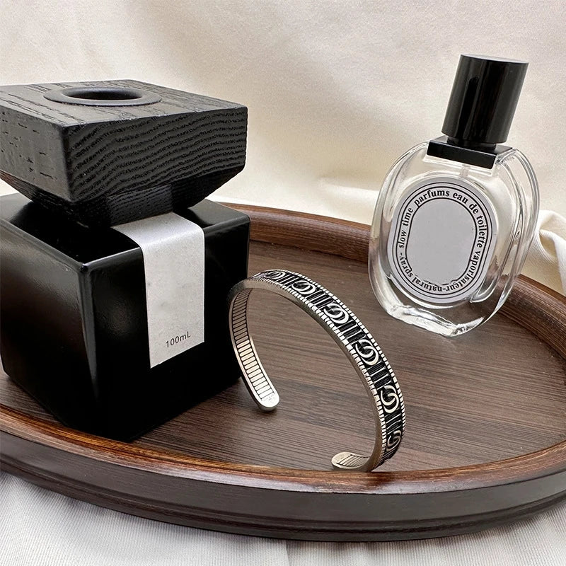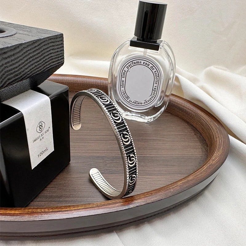 Handcrafted from solid 925 sterling silver with an oxidized vintage finish, this 15g open cuff features etched architectural lines and circular motifs for timeless depth. Adjustable for a personalized fit, it’s bold yet wearable. a statement of heritage and elegance.