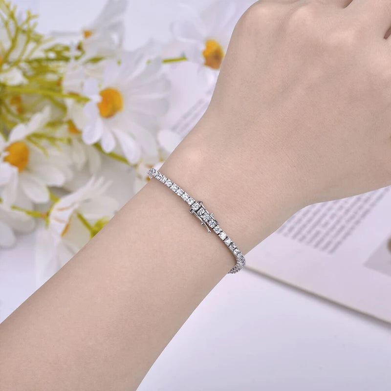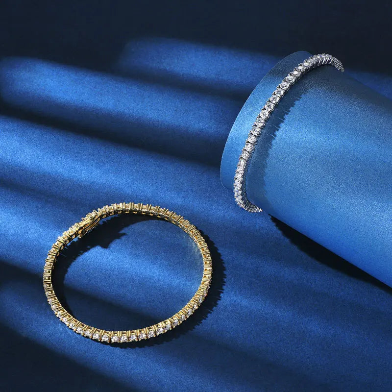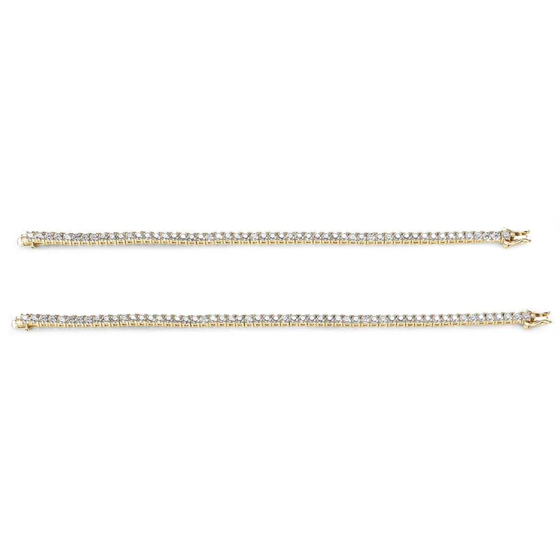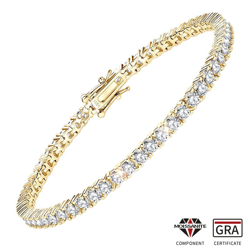 VELTORI Lumora Slim Tenis bilezik, 925 ayar gümüş üzerine premium 18K altın kaplama ile işlenmiş, 3 mm yuvarlak kesim 54+ moissanite taşla parıldar (D rengi, VVS1 berraklık). GRA & GIC sertifikalı, hipoalerjenik. günlük zarafet ve lüks hediyeler için mükemmel.