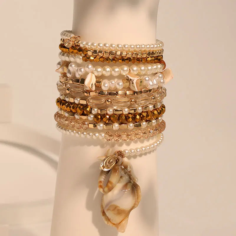 Tasarım: Deniz kabuğu charm’lı çok katmanlı bileklik seti
