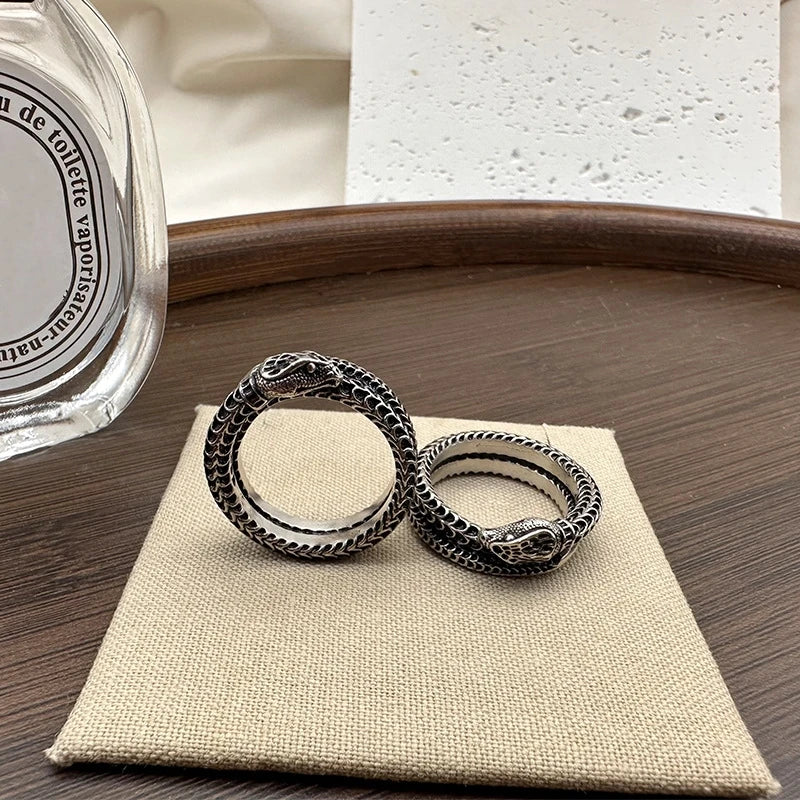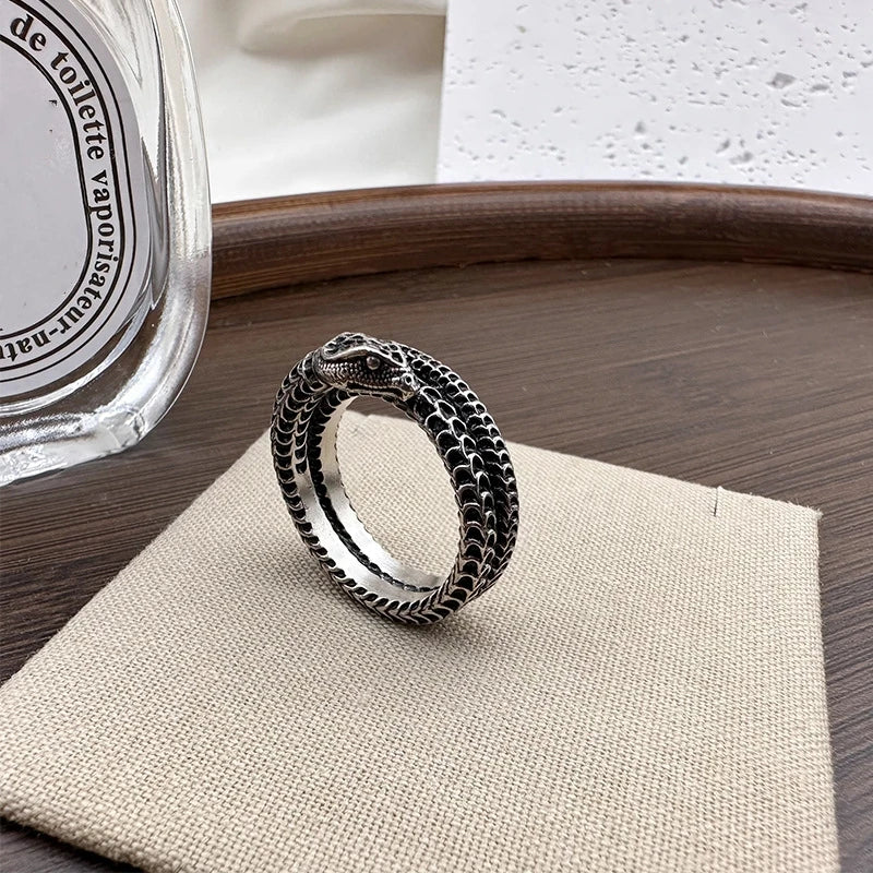 S925 ayar gümüşten elde üretilen Serpenta yüzüğü, yılanın mistik ve sonsuz sembolizmini taşır. Retro detaylar ve cesur hatlarla modern bir enerji sunar. Unisex tasarımıyla çiftler için veya tek başına iddialı bir parça olarak idealdir.