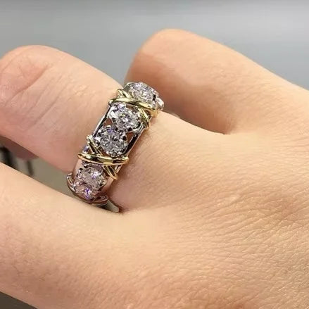 14 ayar beyaz altından üretilen bu eternity yüzük, tırnaklı montürlü D renk moissanite taşlarla (4 mm, VVS1 berraklık, GRA sertifikalı) ışıldar. Hafif ve zarif yapısıyla sonsuz parlaklığı simgeler, zamansız şıklığı parmağınızda taşır.